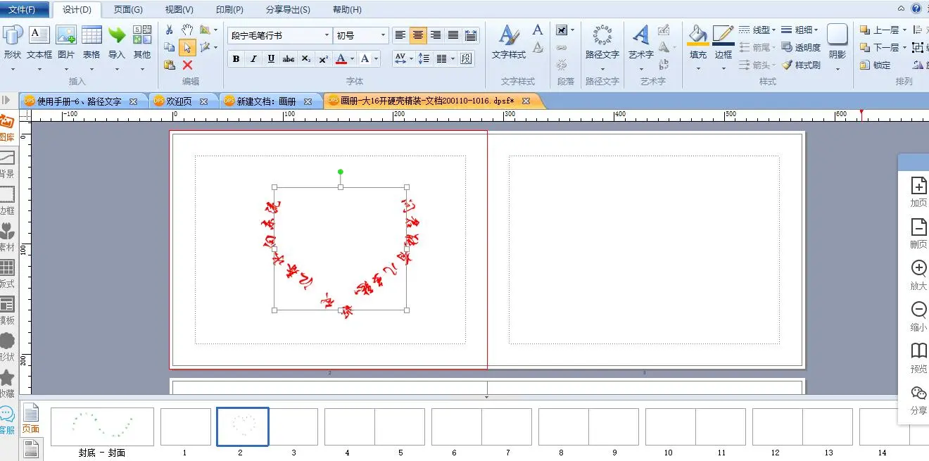 上次我们给大家讲解了DPS排版软件的艺术字效果,共分为插入艺术字、艺术字样式和艺术字变形等效果。其实DPS排版软件除了有艺术字效果外,还有美妙的路文字效果。下面给大家详细地讲解一下。