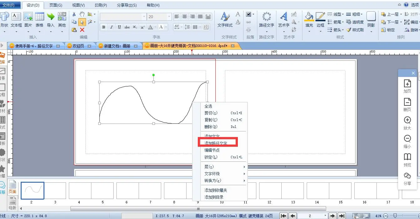 我们手绘一个曲线,点击右键,选择添加路径文字。
