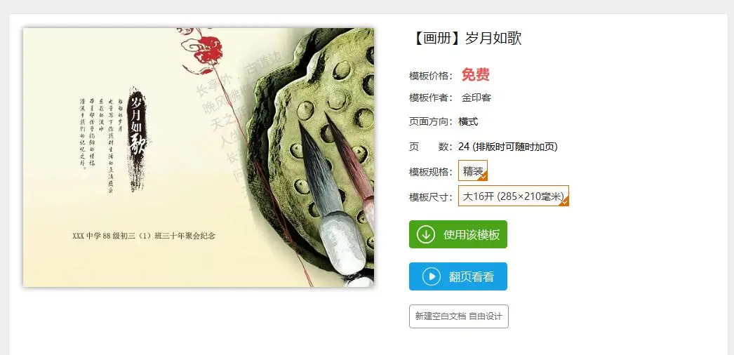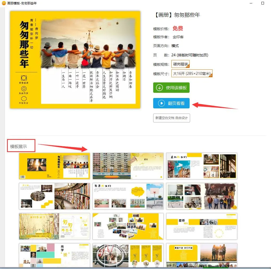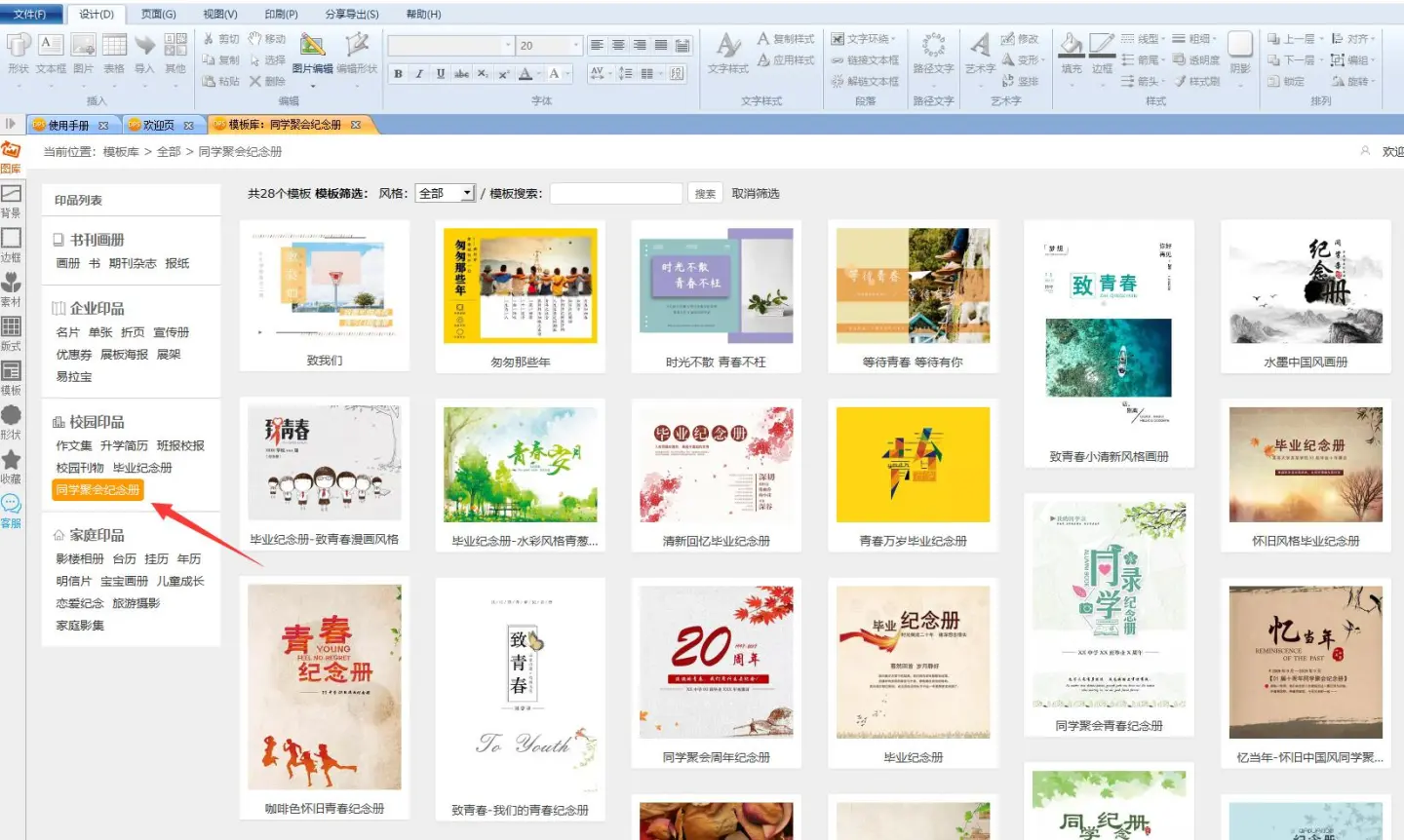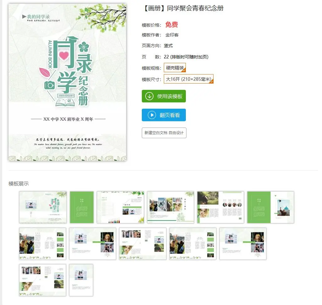 打开金印客排版软件,进入模板库,点击“同学聚会纪念册”,呈现大量模板。
