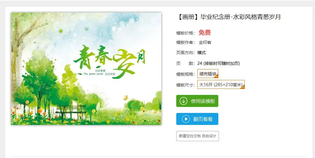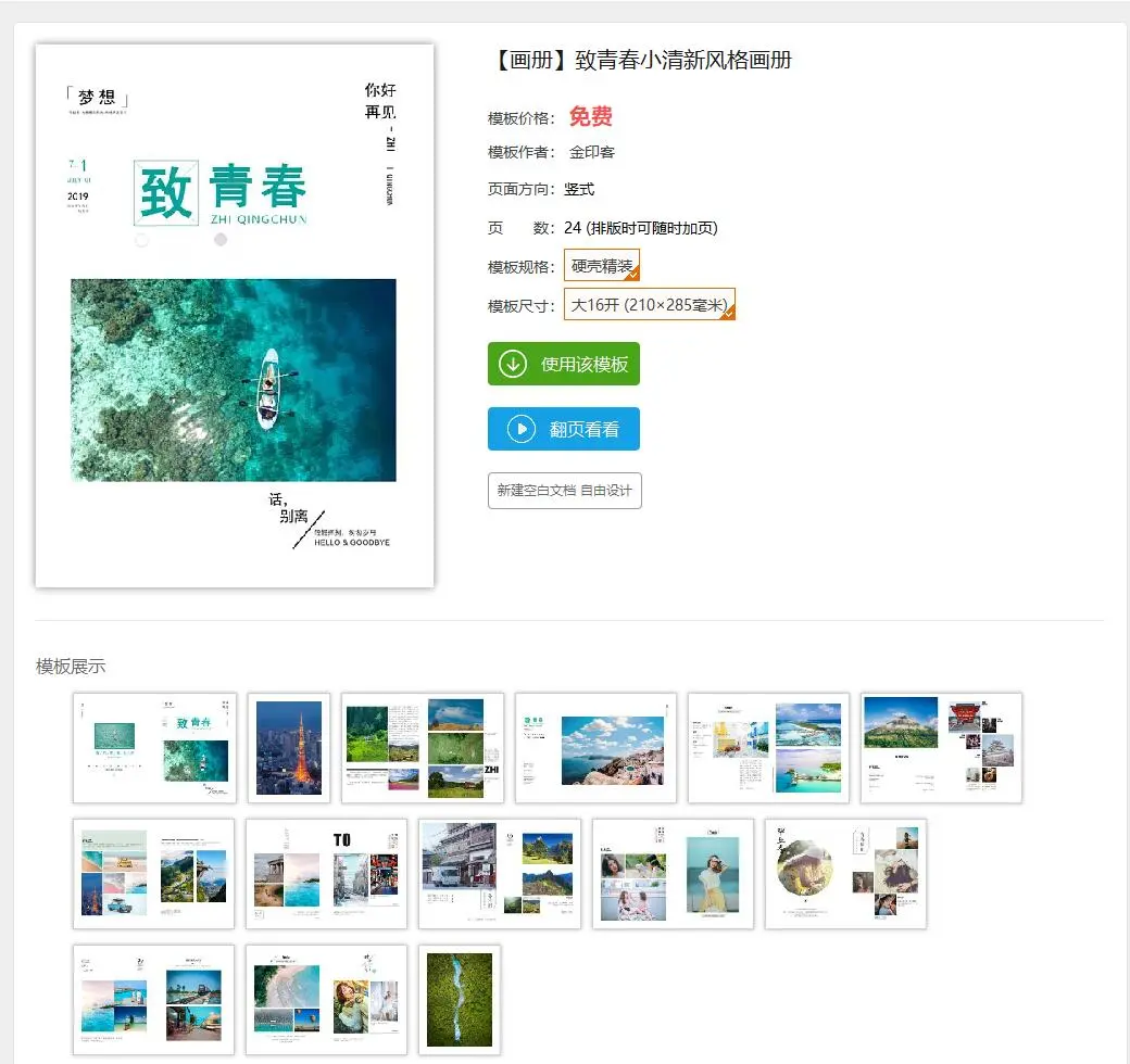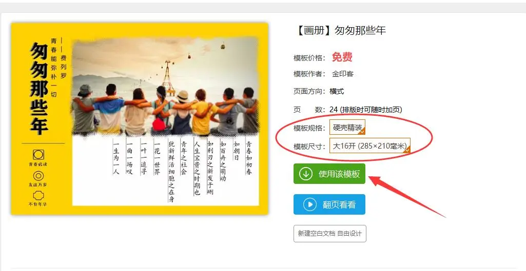 翻页看过之后,觉得还不错,确定“模板规格”和“模板尺寸”,点击“使用该模板”,即可进入编辑页面。
