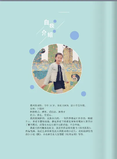 那么作者简介应该写些什么内容呢?在这里应该包含作者姓名、年龄、所在年级等一些常规信息,同时还可以包含身高、体重、星座等其他信息。简介中小作者可以稍微介绍一下自己的性格特点和兴趣爱好,彰显自己与众不同的“特色”。另外,如果小作者曾经获得过一些荣誉,比如钢琴大赛一等奖、象棋大赛冠军、歌唱比赛冠军等,也可以将这些辉煌经历写入简介中。总之,简介中可尽量凸显自己的“特色”。
