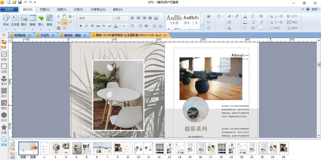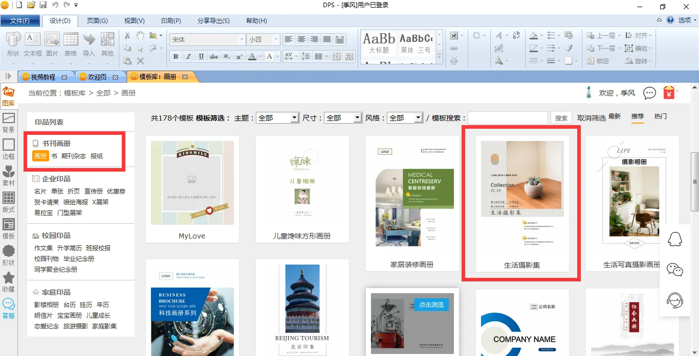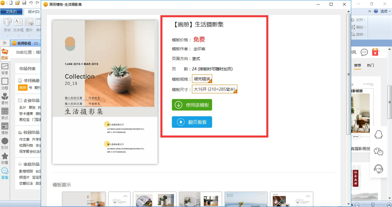那么,这些画册模板要如何使用呢?非常简单,所有画册都是可以免费下载免费使用的。你只需要下载金印客DPS设计排版印刷分享软件,打开【模板库】,在【书刊画册】中找到【画册】,就可以发现里面有很多个人生活写真画册模板了。