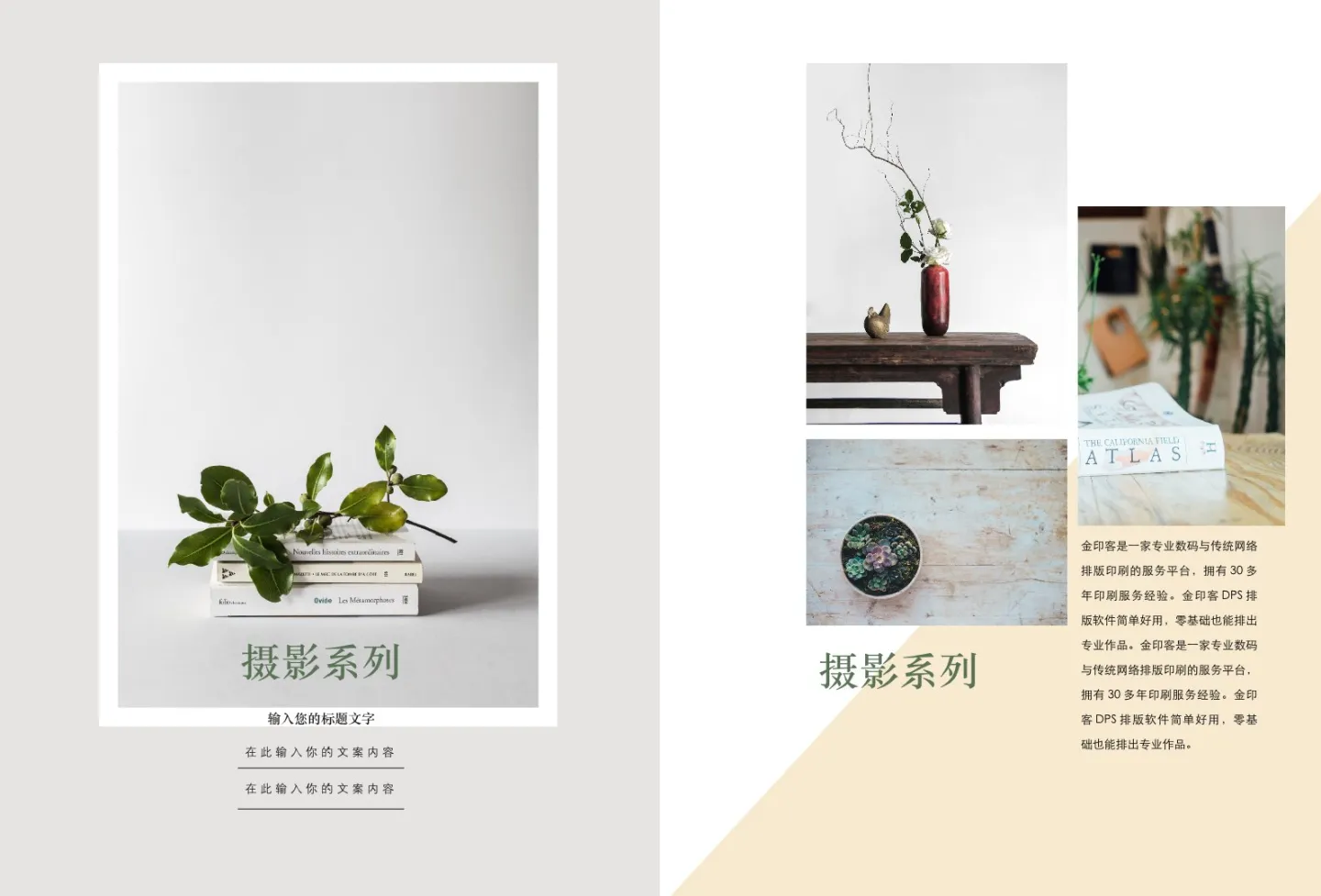 这些画册模板,都是金印客设计师精心制作的,充满了浪漫诗意的审美风格。而用这些唯美清新的画册,将自己的“小资生活”记录下来,才更加相得益彰。每当翻阅自己的“生活日记”时,就如同翻阅一本艺术画册或诗画集一样,让生活变得更加具有仪式感。
