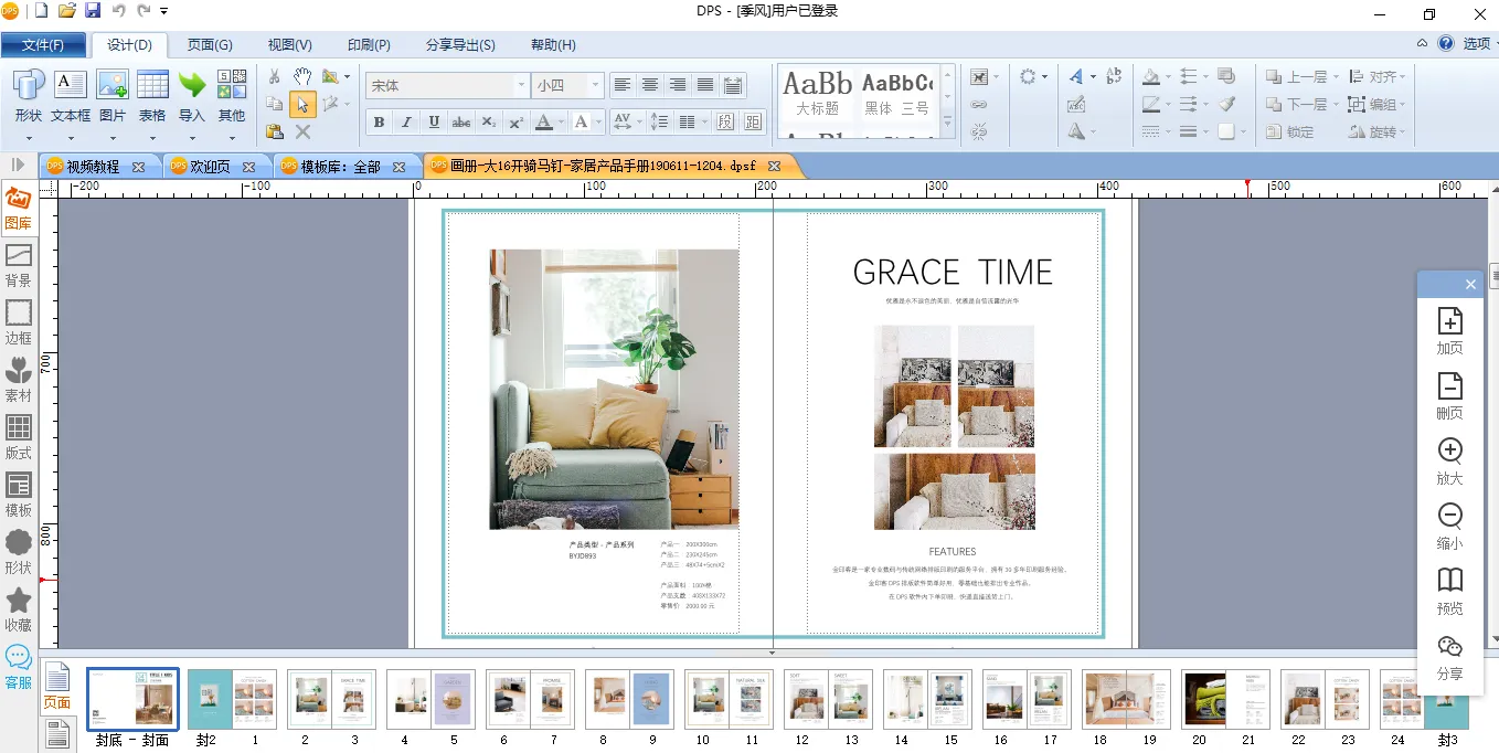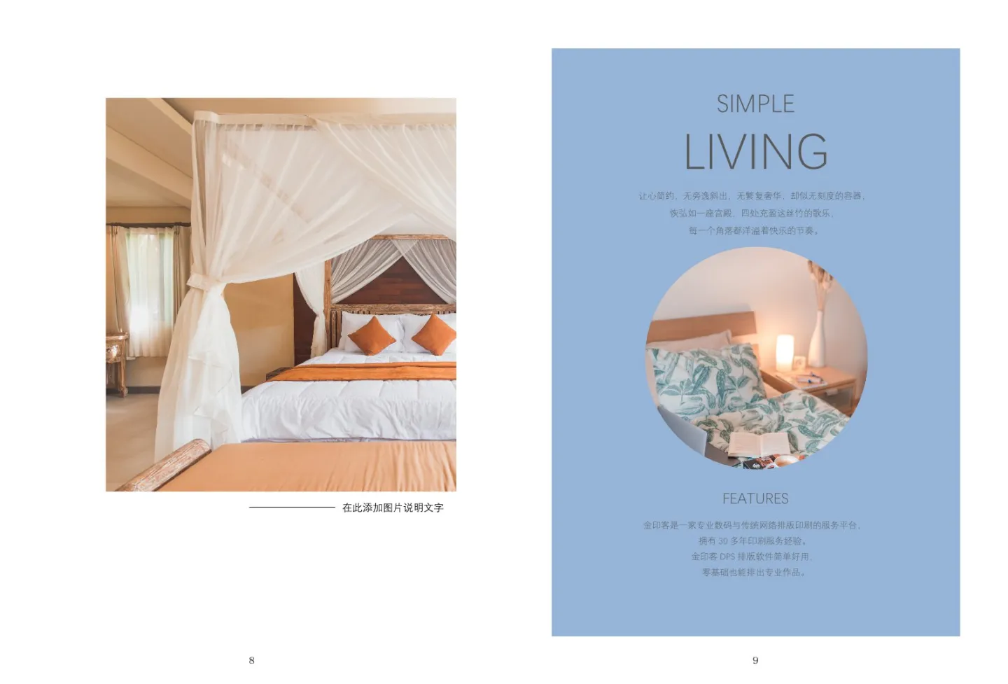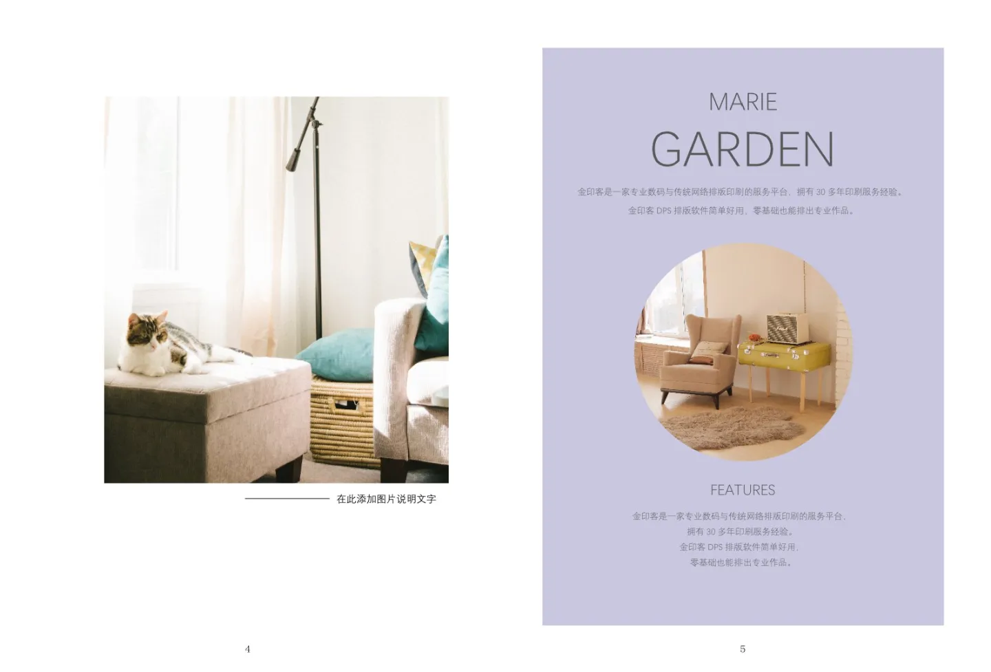 模板打开之后,就可以对模板内容进行编辑了。将模板中的图片和文字改成你所需要的图片和文字,一本优质的家居产品目录就完成了。