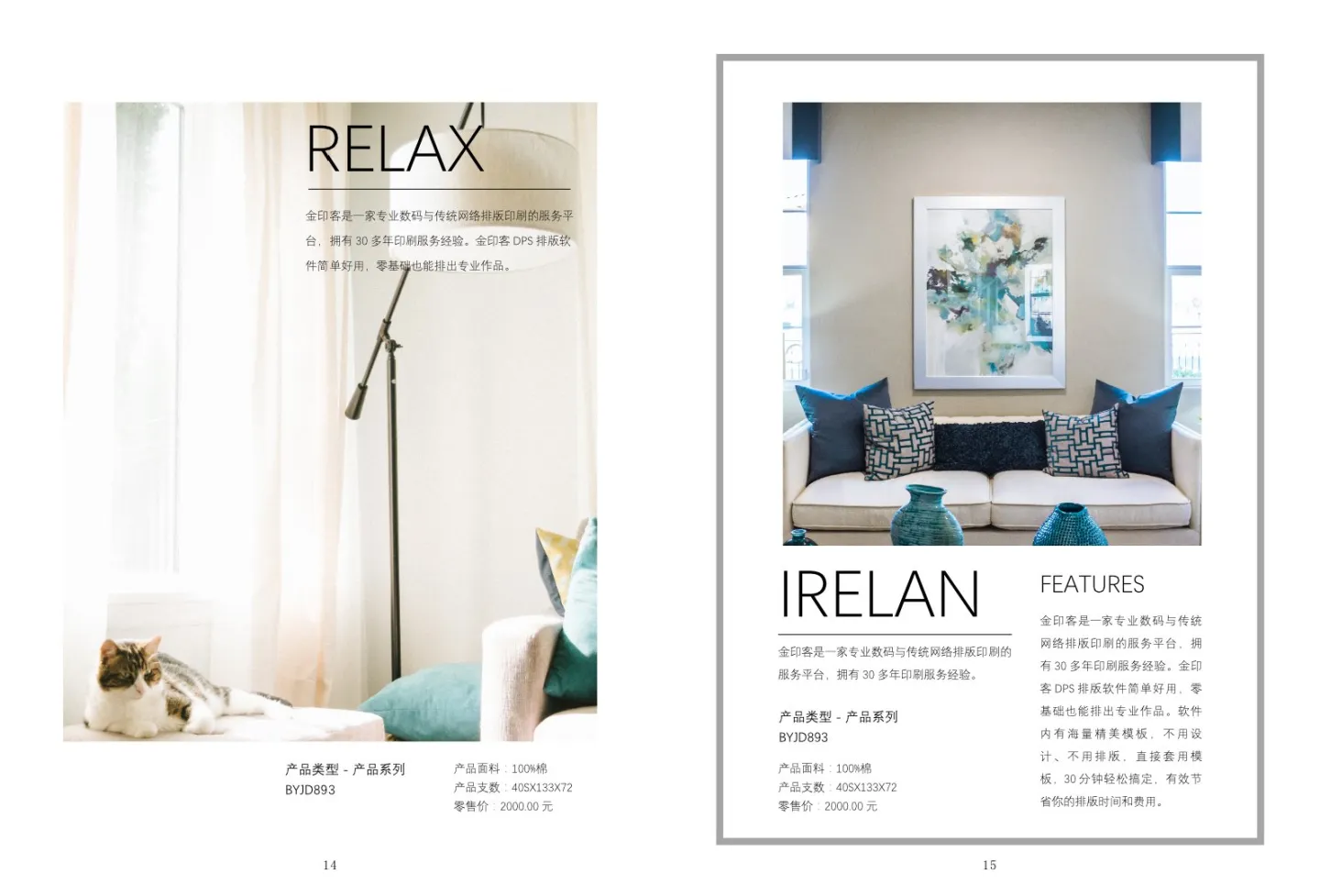 那么,有没有办法节省这笔经费,同时又能做出同样优质和专业的家居产品目录呢?当然有,那就是使用金印客DPS设计排版印刷分享软件内的家居产品目录模板!下面我们就给大家展示一下这个模板: