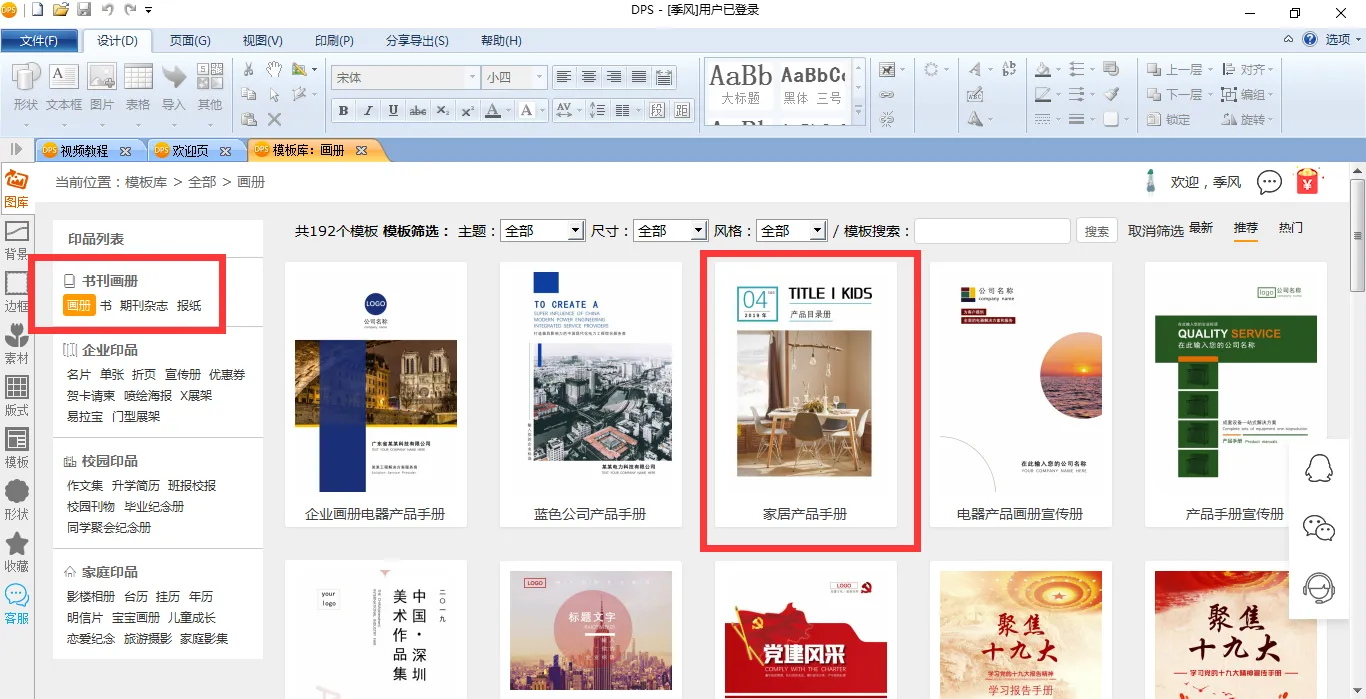 整体看来,是不是非常的优美高档呢?那么,这个模板要怎么使用呢?告诉大家,模板是可以免费使用的!只要你免费下载金印客DPS设计排版印刷分享软件,然后打开【模板库】,选择【书刊画册】——【画册】,就可以找到家居产品目录了。
