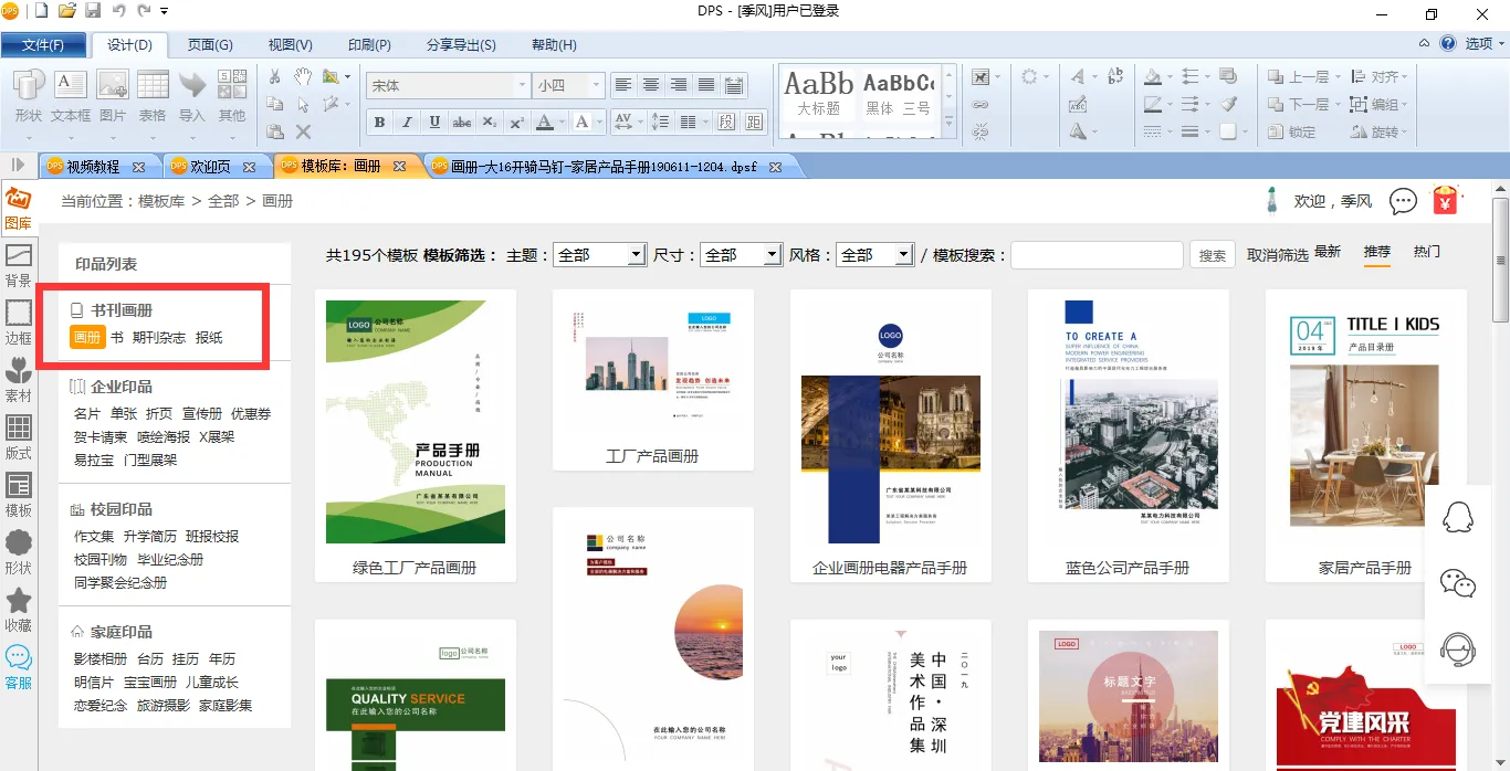 这些模板全部都可以免费下载使用。你只需在电脑上免费下载安装金印客DPS设计排版印刷分享软件,打开【模板库】,选择【书刊画册】——【画册】,就会找到各种各样的画册模板。