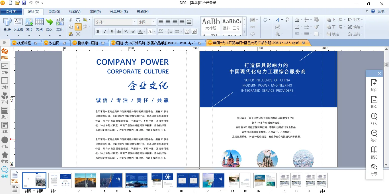 打开模板后,就可以对模板内容进行编辑了。将模板中的图片和文字替换为你需要的图片和文字,一本画册就完成了。