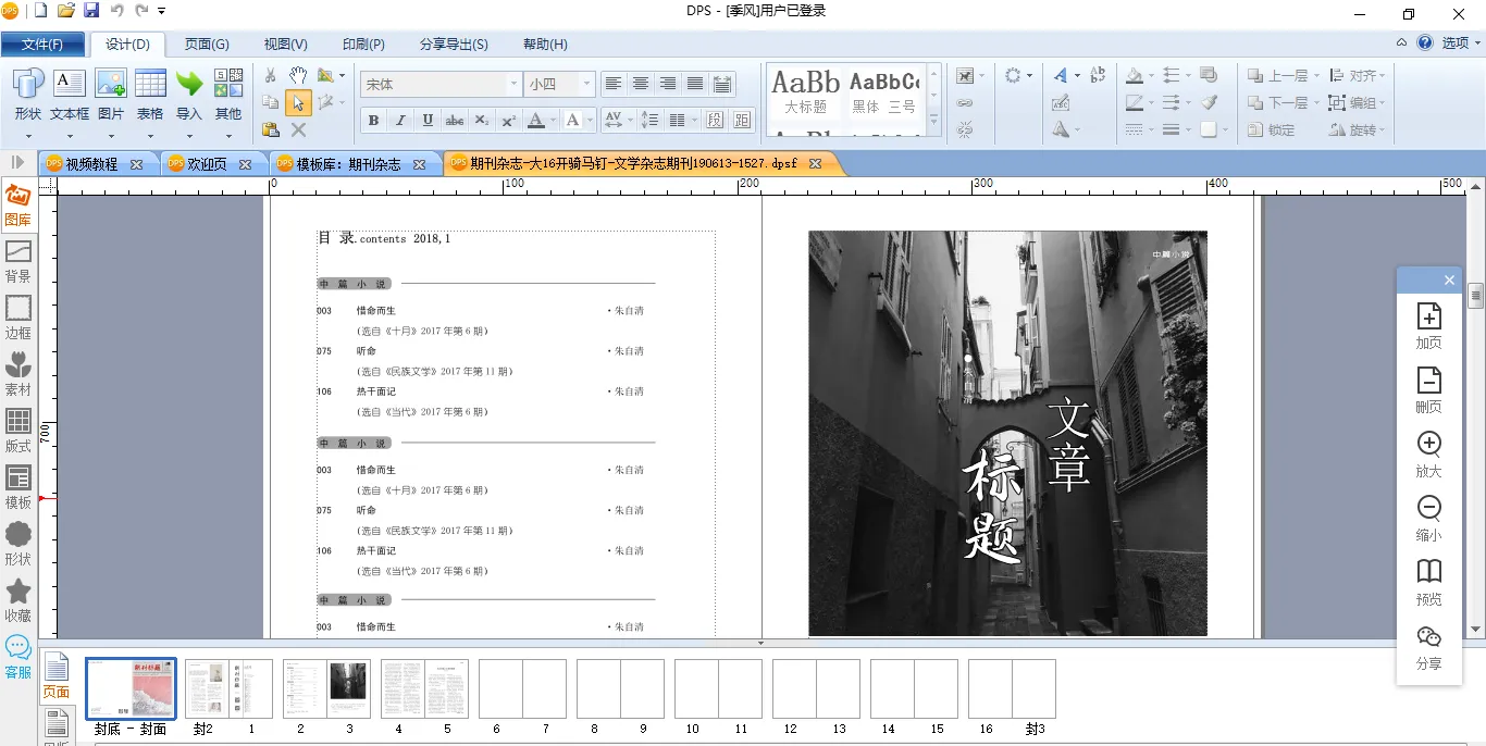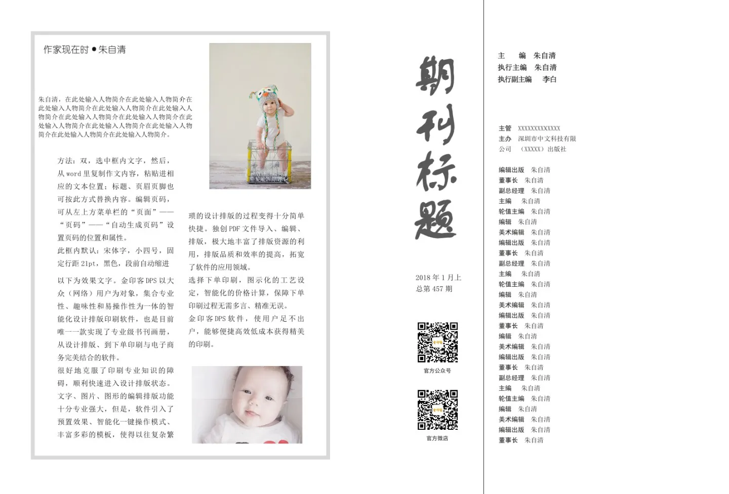 模板在软件内打开之后,,就可以对模板内容进行编辑了。将模板中的文字和图片内容替换为你需要的文字和图片,一本专业的杂志就完成了。
