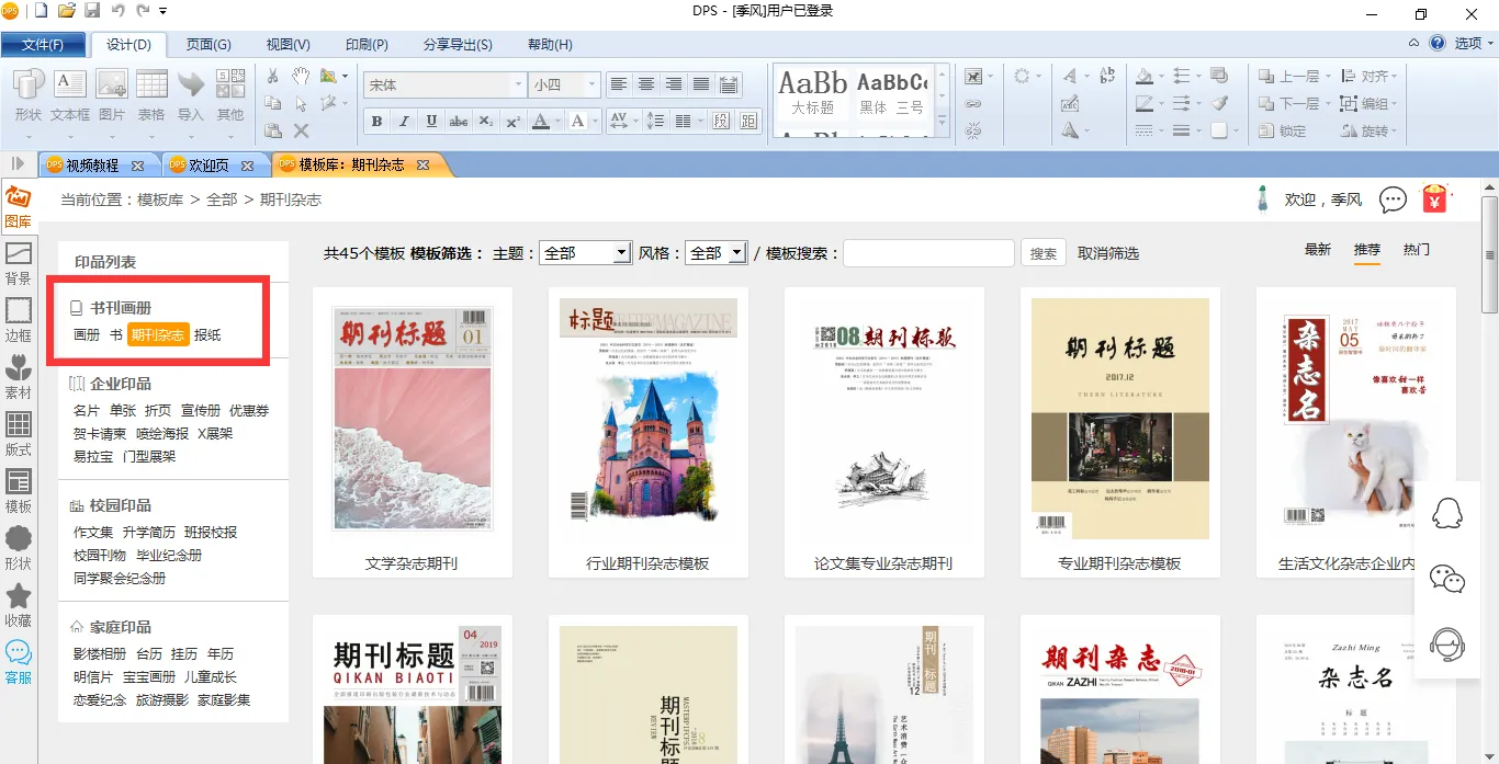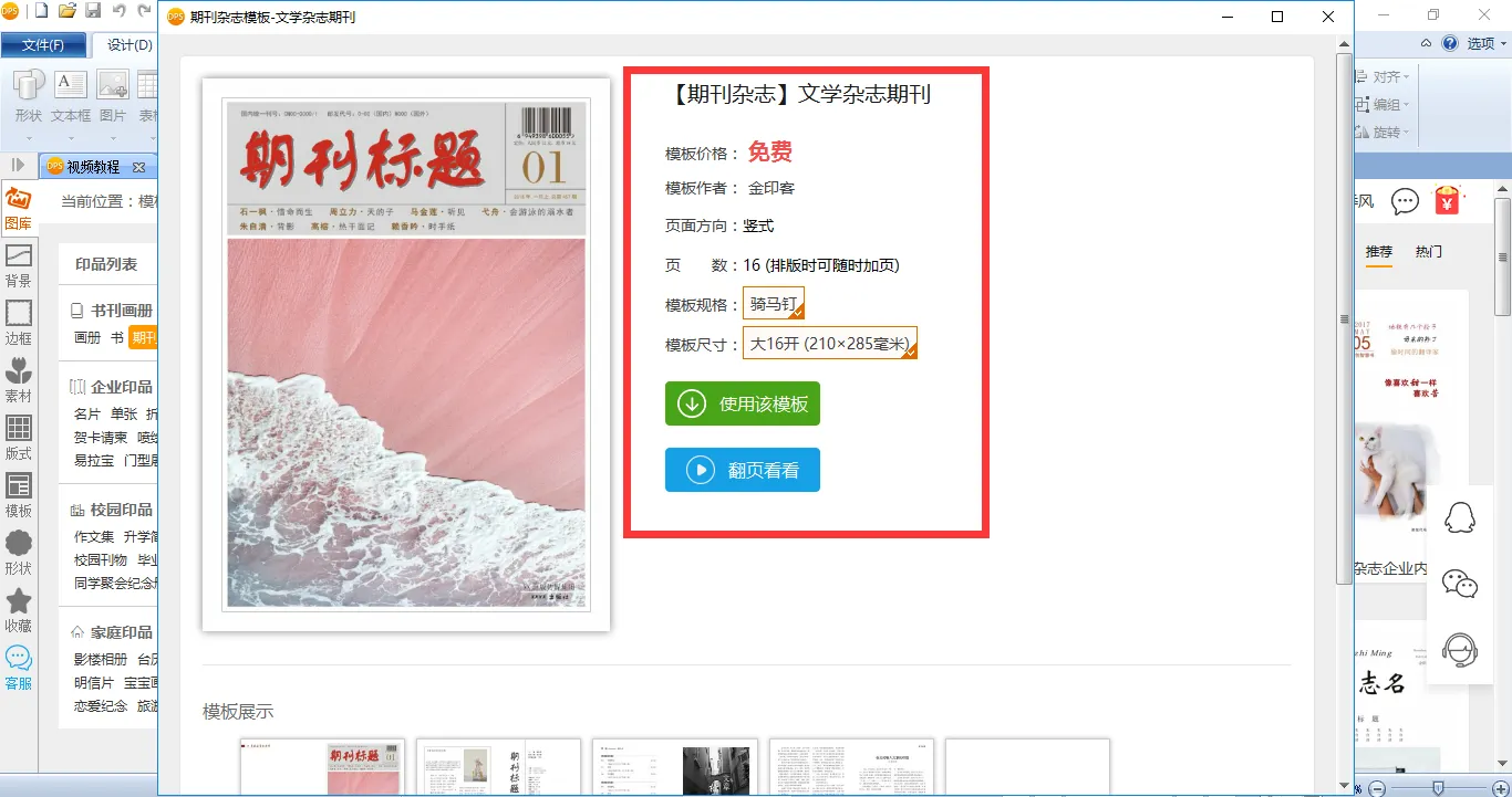 那么,模板要怎么用呢?非常简单,首先你只需在在电脑上免费下载金印客DPS设计排版印刷分享软件,然后打开【模板库】,选择【书刊画册】——【期刊杂志】,就会发现里面有相当多的杂志模板。