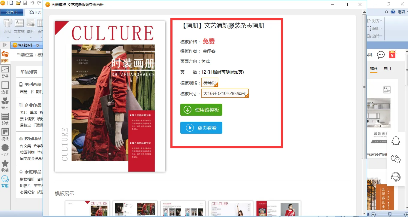找到需要的模板后,可以先点击【翻页看看】,查看模板的3D电子版,然后再选择【使用模板】。