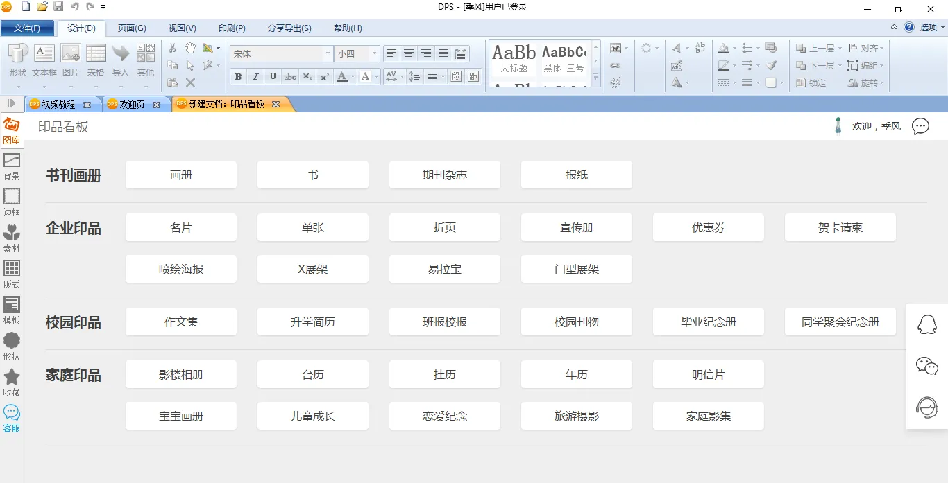 打开印品看板,选择自己想要的印品种类,就可以轻松新建文档。