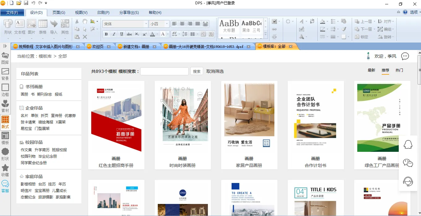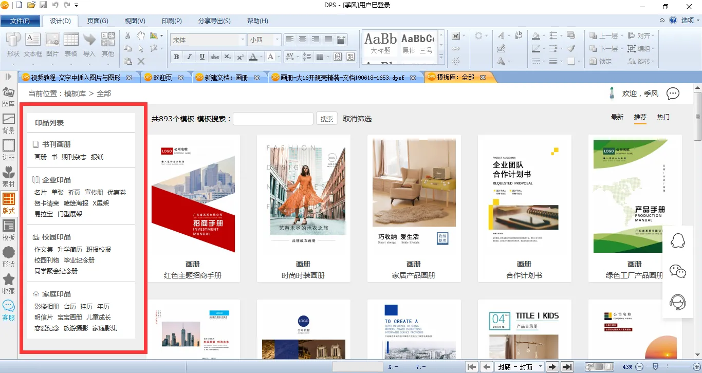 当然啦,金印客DPS设计排版印刷分享软件最厉害之处在于,它有上千套现成的模板!而且所以的模板都可以免费下载,免费使用。在电脑上下载软件后,打开【模板库】,就会发现里面有许多类型的模板。包括书籍、画册、报纸、杂志、企业宣传册、家庭相册等等,但凡你需要制作的印刷品,这里都有现成的模板可以挑选。