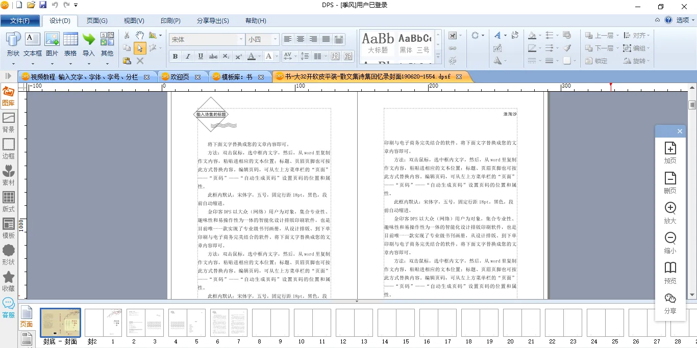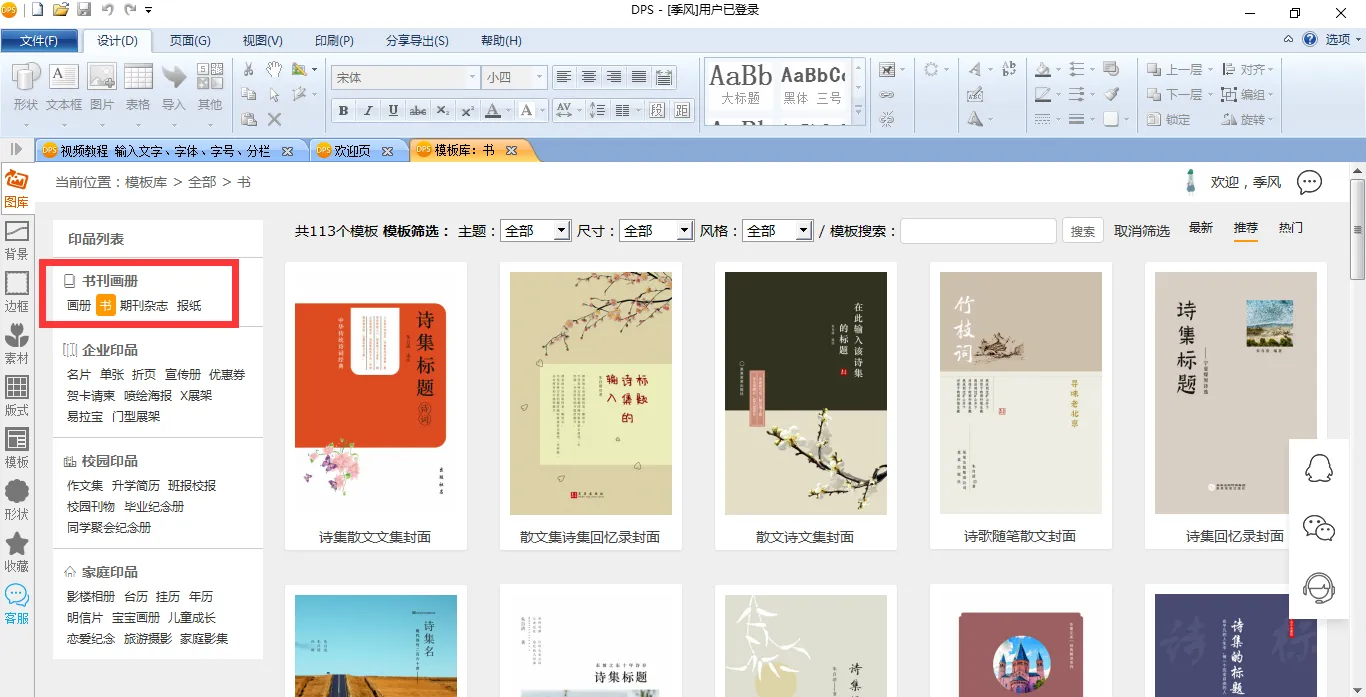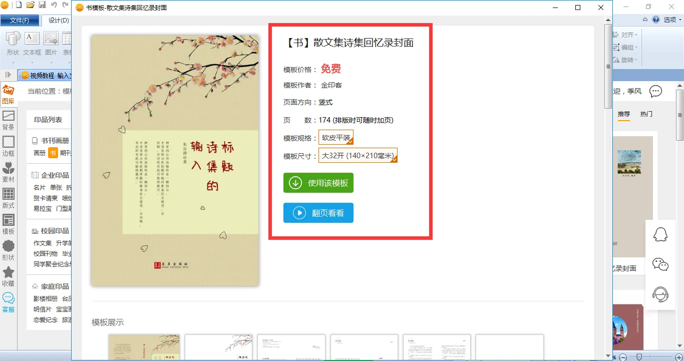 在金印客DPS设计排版印刷分享软件内,有大量的模板,包括书籍、画册、报纸、杂志、相册等等。而在书籍模板中,又有包括诗歌、散文、小说、回忆录等多种类型的模板。所以想要出书的用户,可以非常轻松地找到自己需要的模板。