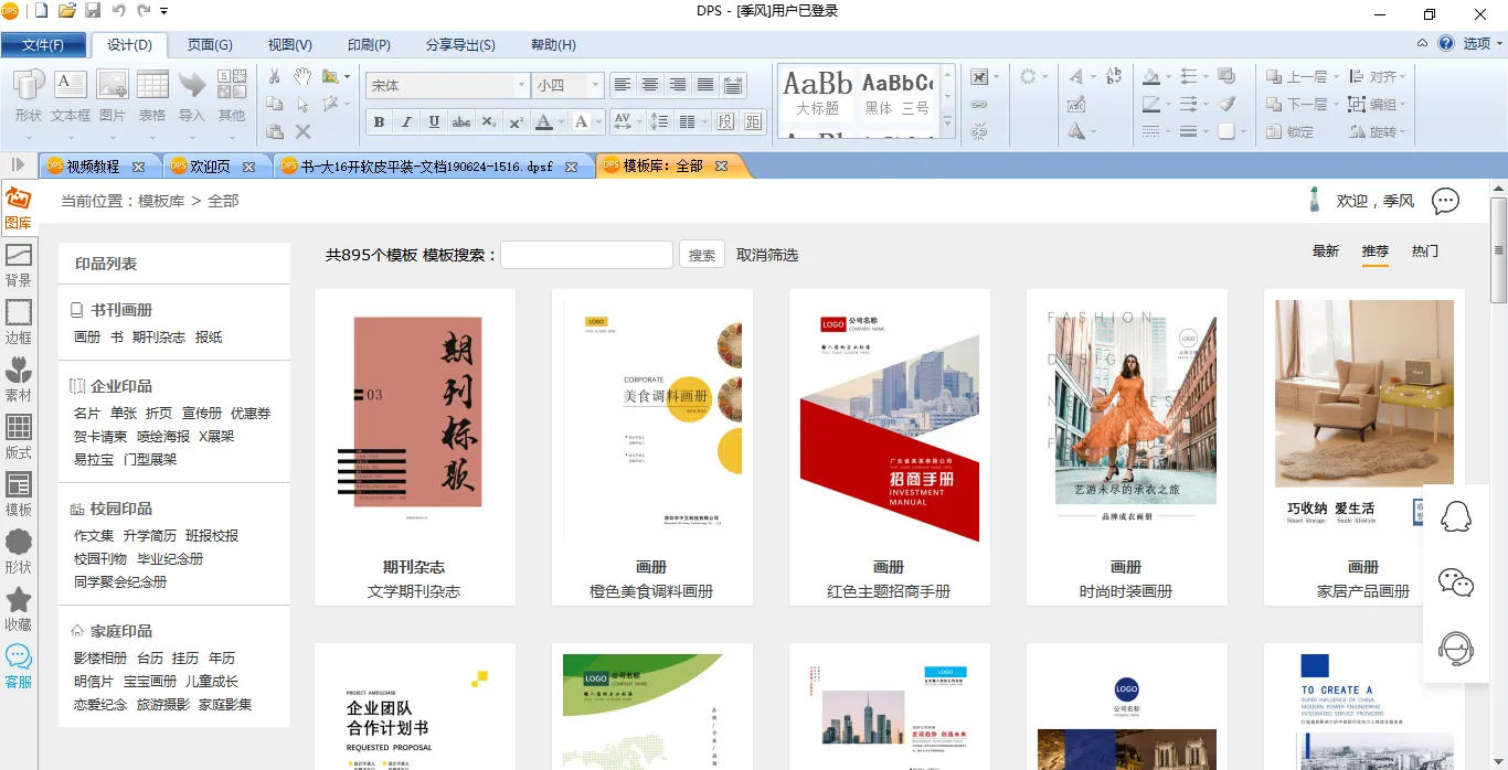 如果你还希望排版其它作品,如杂志、画册、毕业纪念册等,都可以在软件中找到非常多的模板。那么,这些模板要如何使用呢?非常简单,你只需要在电脑上下载金印客DPS设计排版印刷分享软件,打开软件界面的【模板库】,然后选择你需要的印品类别,就可以找到这个类别中的全部模板。