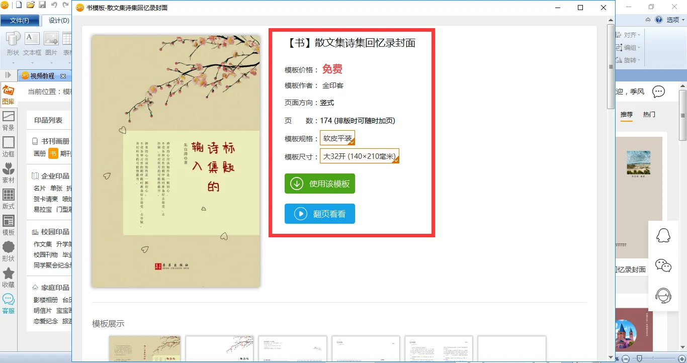 选中模板后,选择【使用该模板】,就可以将模板在软件内打开。