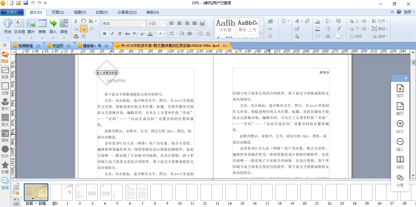 将模板在软件内打开后,就可以对模板的内容进行编辑了。将模板的内容替换为你需要的内容,一本专属于你的作品就完成了。
