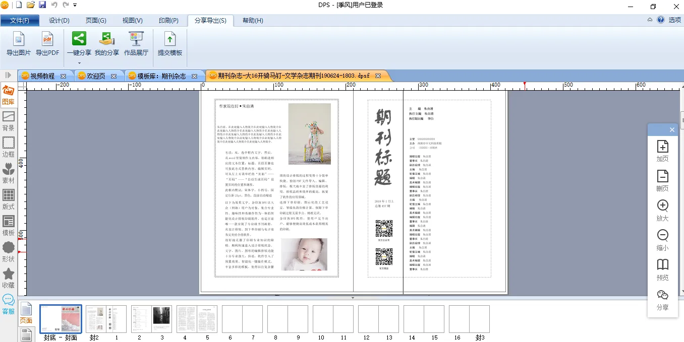 杂志排好之后,可以通过点击软件上方的【分享导出】——【一键分享】——【分享所有页】,获得免费的电子版杂志。
