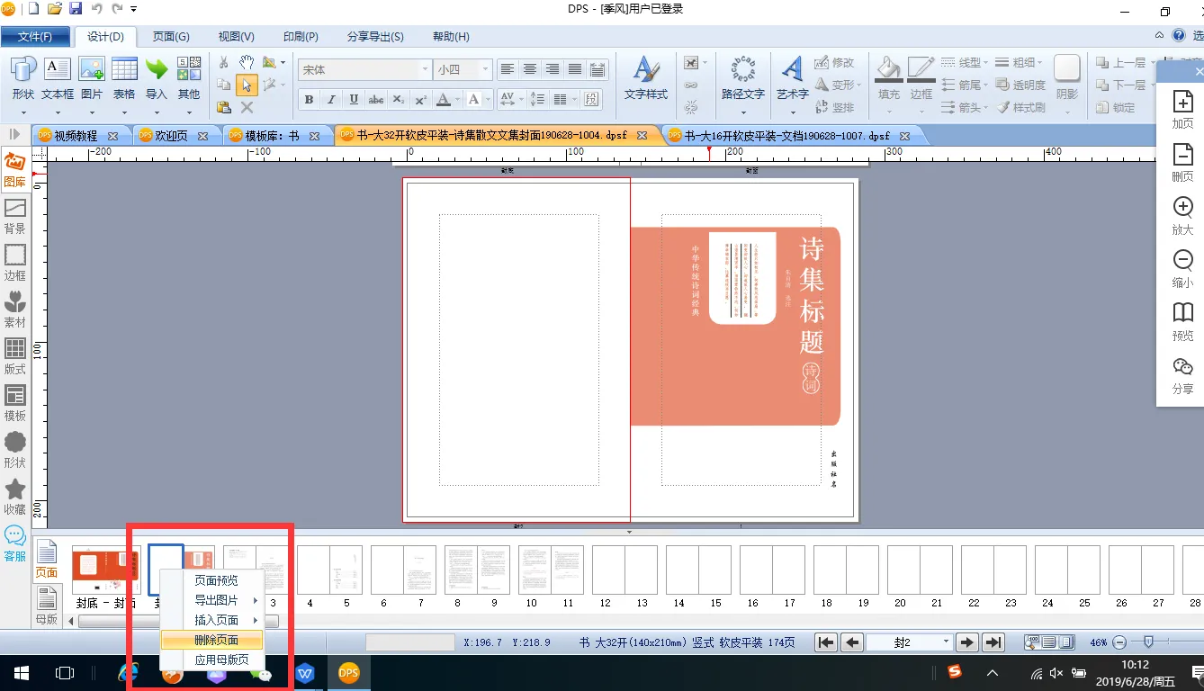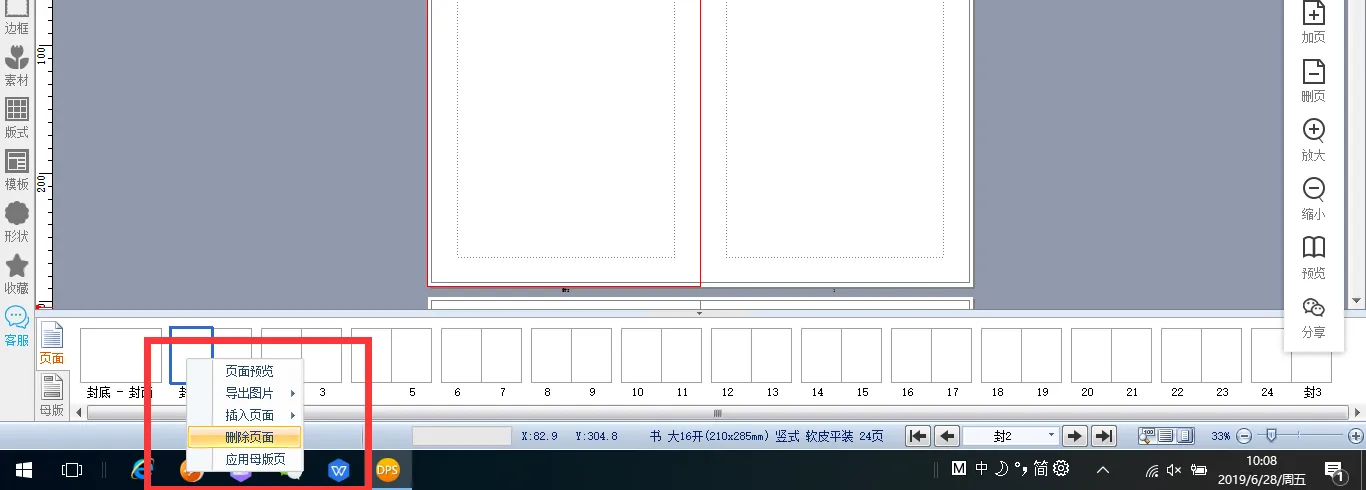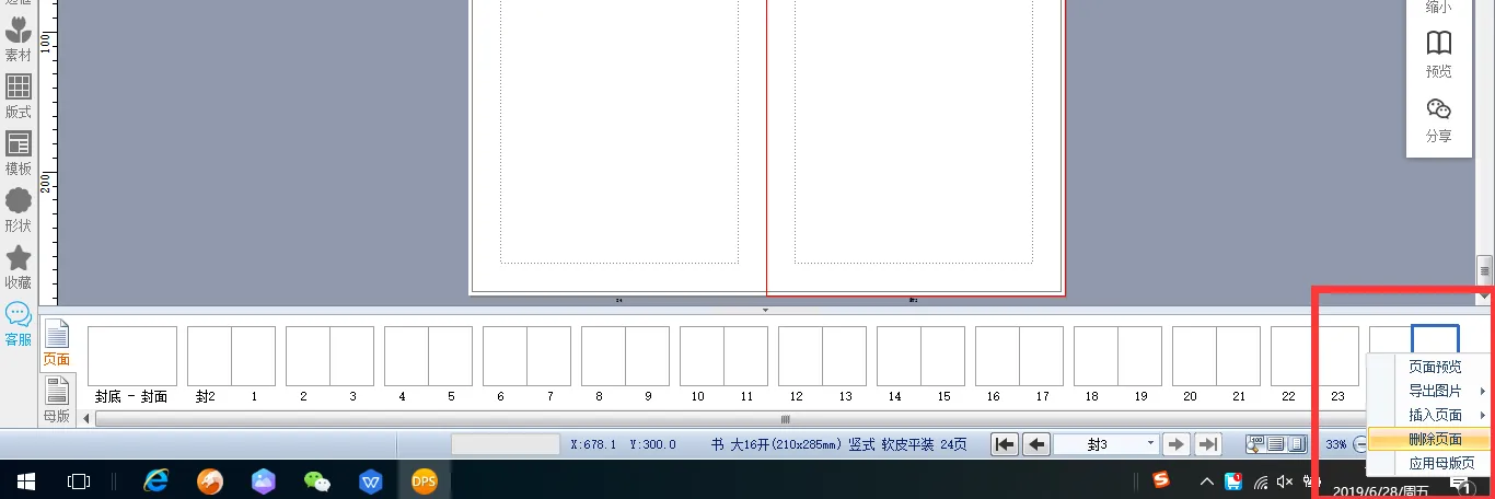 那么,封2,封3要如何来删除呢?你只需在新建的文档里,选中封2,然后点击鼠标右键,选择删除页面即可。