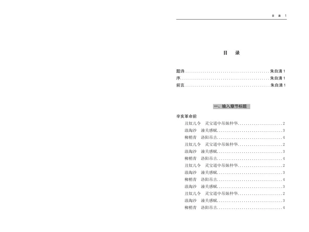 当然,制作目录还有一种更简单轻松的方法,就是直接套用模板。这样,你就只需要将模板的文字,替换为你的作品的标题就行了,最多只需要3分钟就能够完成。