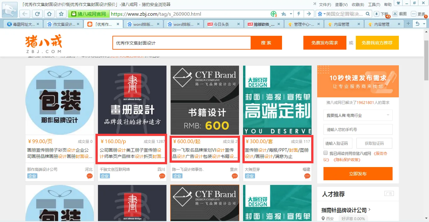 还有一些朋友,因为自己排版感觉太困难,索性就想请别人,比如做设计的朋友或者专业设计师来设计。如果是请朋友设计的话,那就得去求人,还得欠人家一个大人情;如果是请设计师设计的话,那笔设计费也是不小的金额,比如这是猪八戒网上的报价: