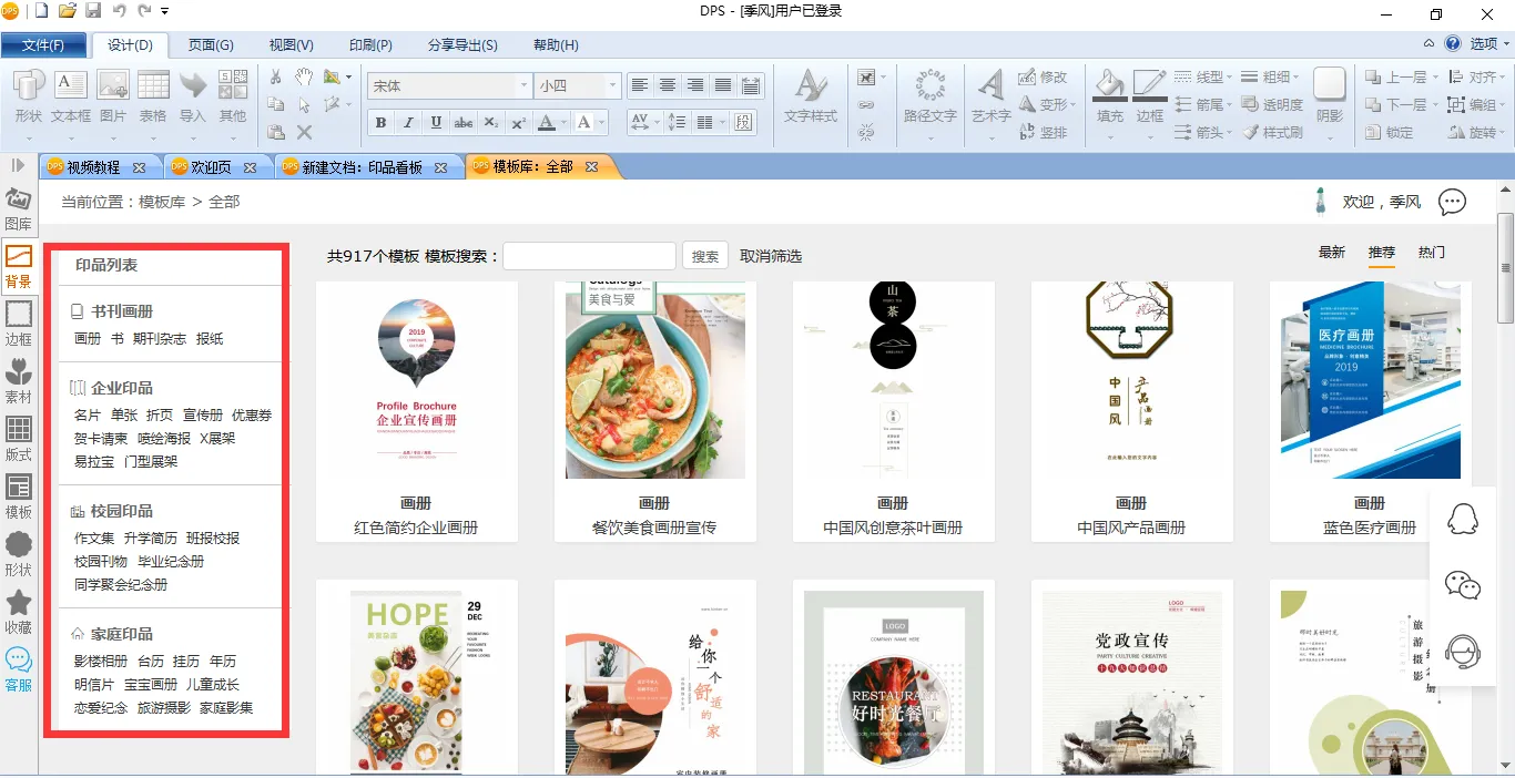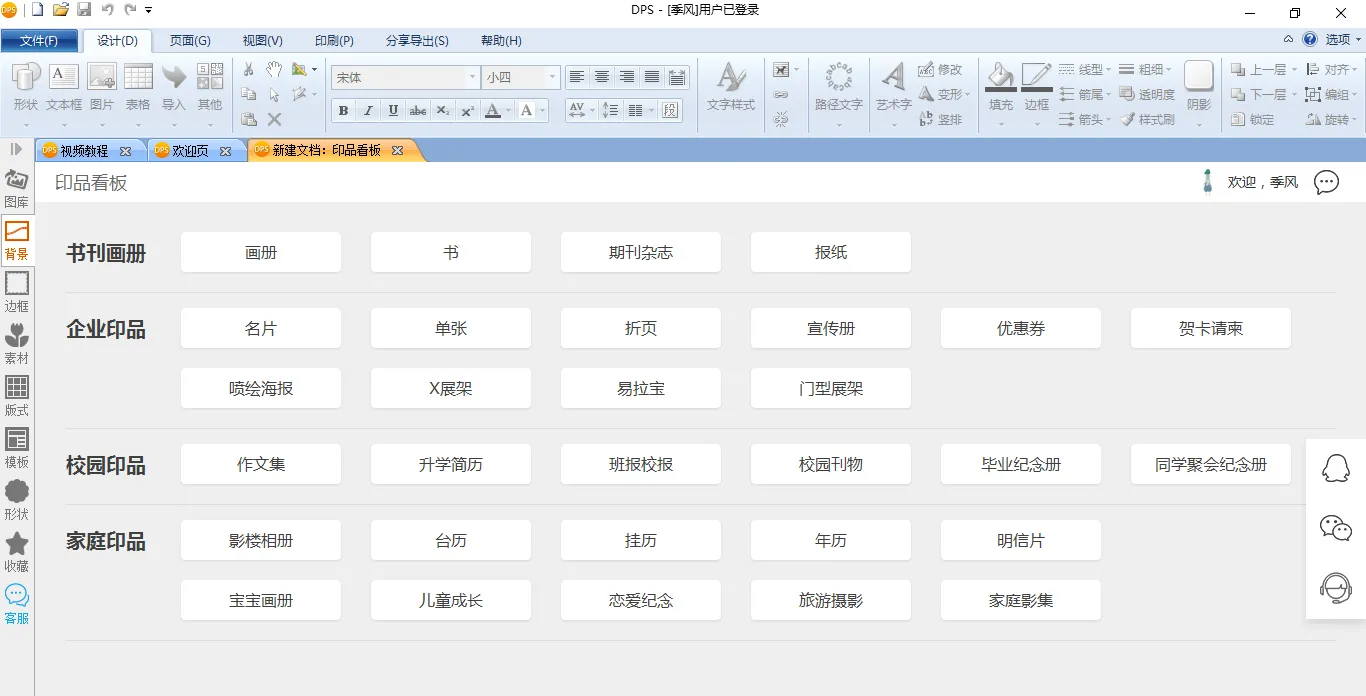 软件界面类似于Word,你只要会操作word,就能熟练使用它。软件上方的编辑栏,功能与word相似,不同的是,软件左侧还有大量的背景、素材、边框、版式、形状供你挑选,让你在排版时更加简单方便。以编辑图书为例,一旦熟练使用DPS排版软件,编辑一个章节仅需5分钟,编完一本书也只需要几个小时就能完成。