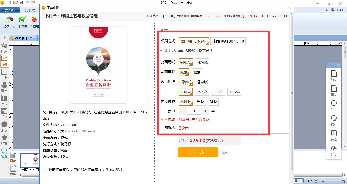 另外,如果赶时间,或者有别的原因,你还可以从软件中导出PDF文件,去就近的印刷厂印刷,也十分方便。