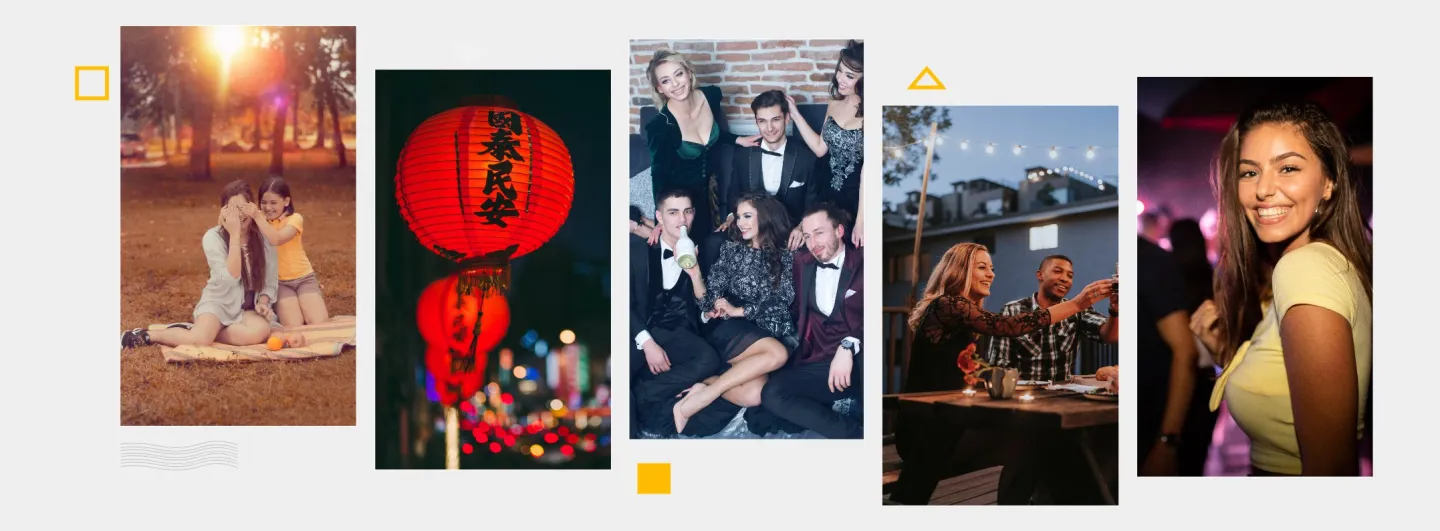 这种排法适合图片比较多的情况,可以避免图片太多而显得混乱,而且因为拼成的形状要与设计需求相关,所以会显得更有创意。