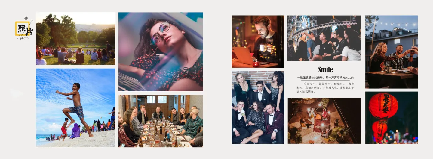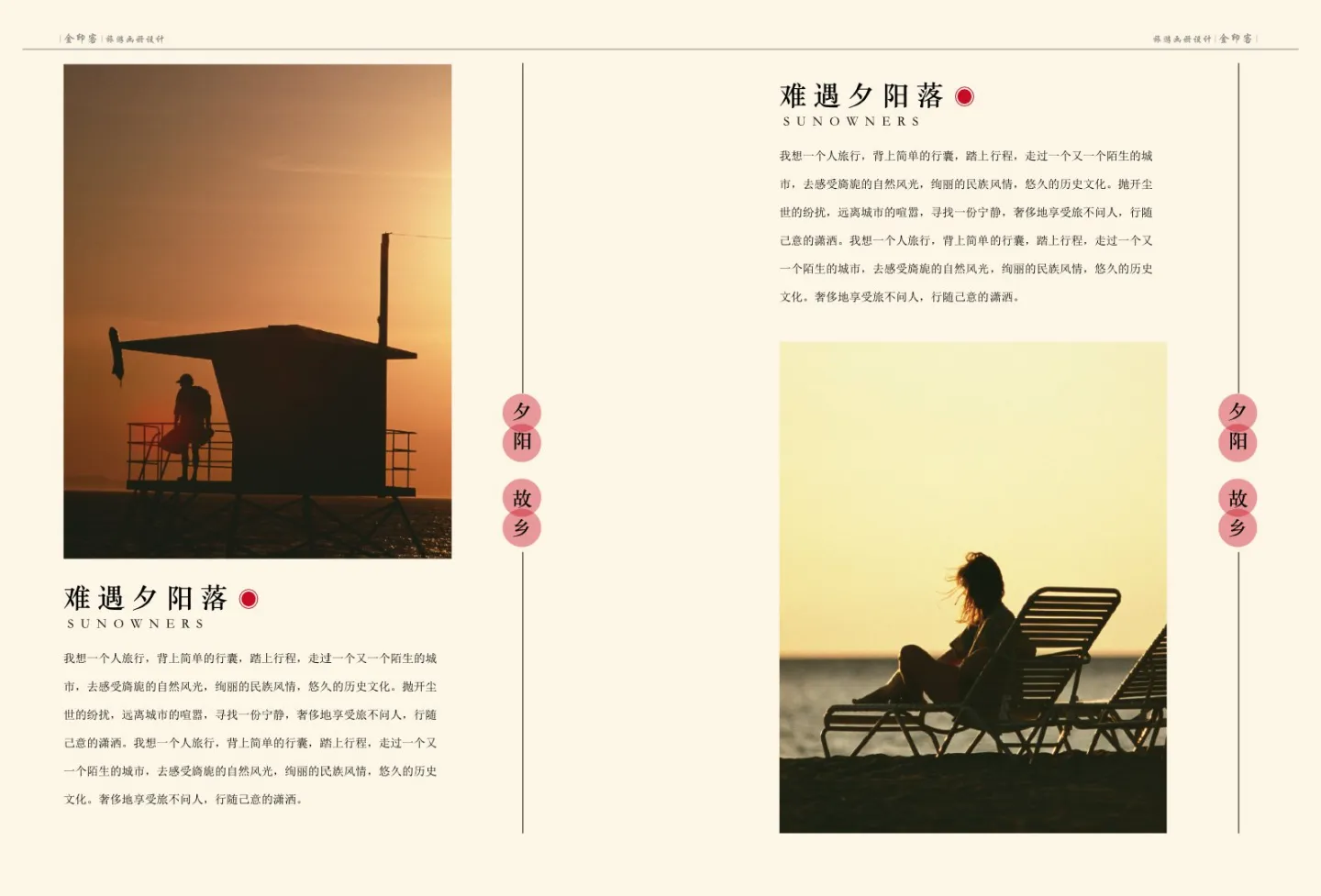 这是比较常规的一种排版方法,将版面分为左右两个部分,然后按照顺序排版。排版时可以是一半文字一半图片,也可以是图片文字在左右两侧平均分配。这种排版的优点是条理清晰,一般不会出现大的失误,也比较容易出效果,但缺点是缺乏创意。