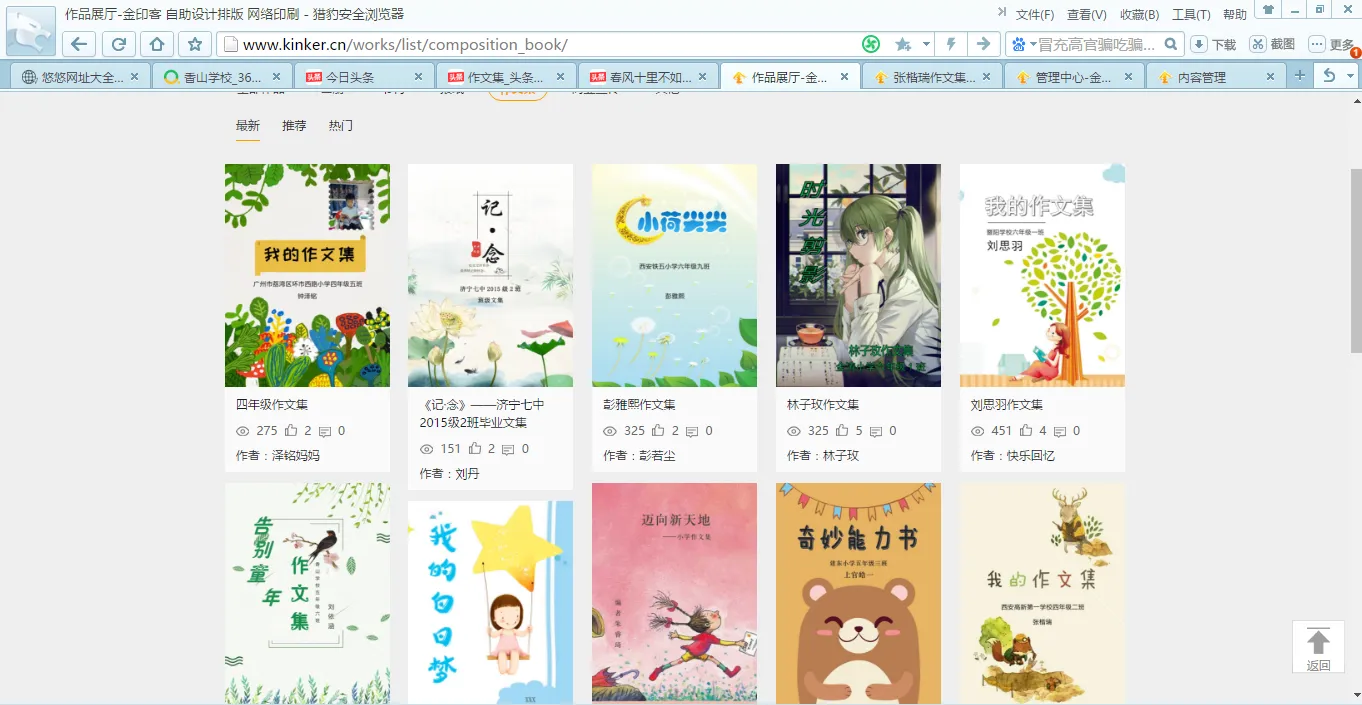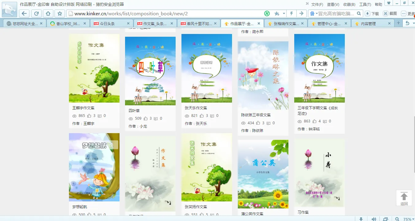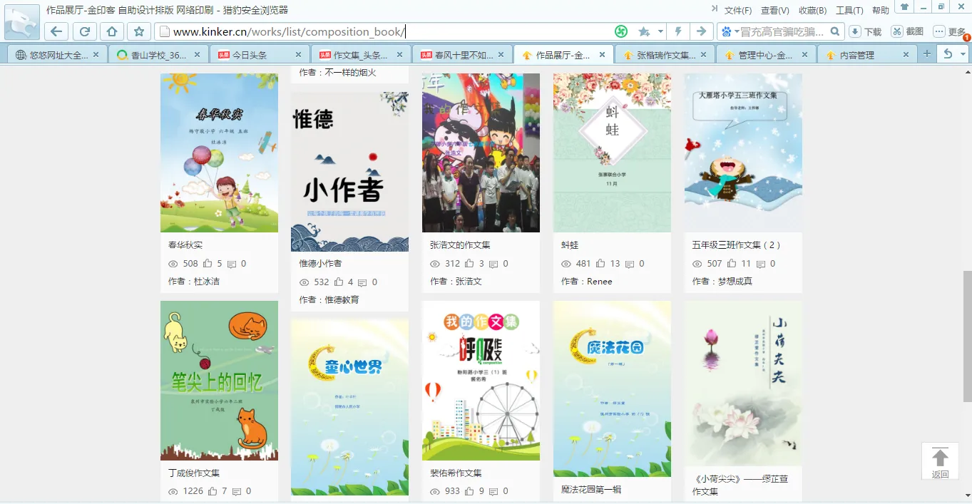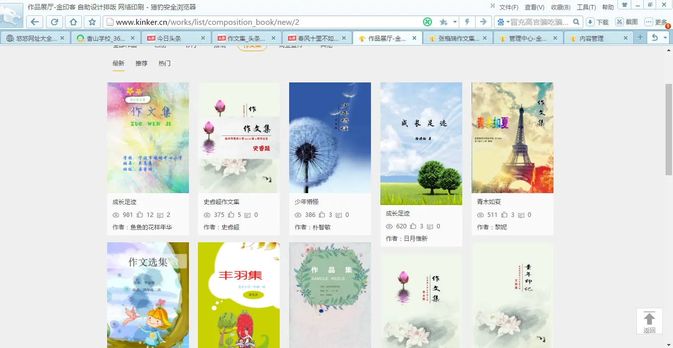 这样的学校还有很多很多,你只需要在金印客的【作品展厅】里,选择【作文集】,就能看到来自许多学校的学生制作的作文集。
