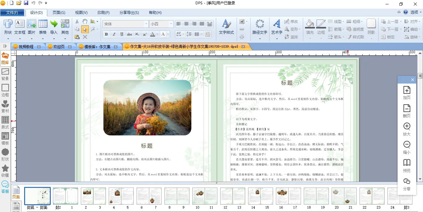 有没有两全其美的方法呢?当然有!在这里我们要给大家推荐,目前最简单的制作作文集的方法,那就是套用金印客的作文集模板。在金印客DPS设计排版印刷分享软件内,有非常多的作文集模板,包括中国风、小清新、卡通的、可爱的等等。模板都是由金印客的设计师精心设计的,非常精美。
