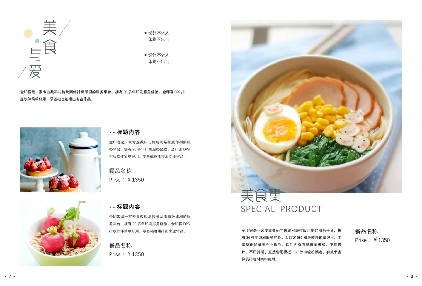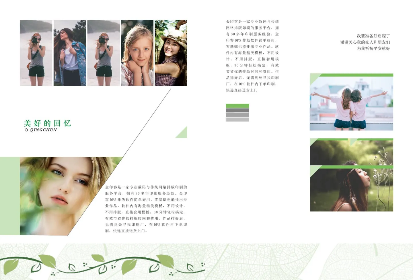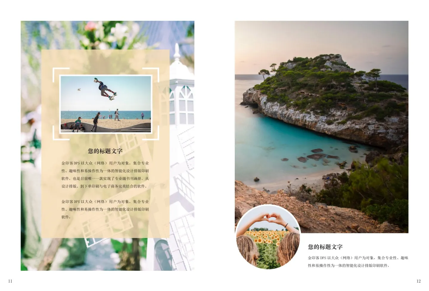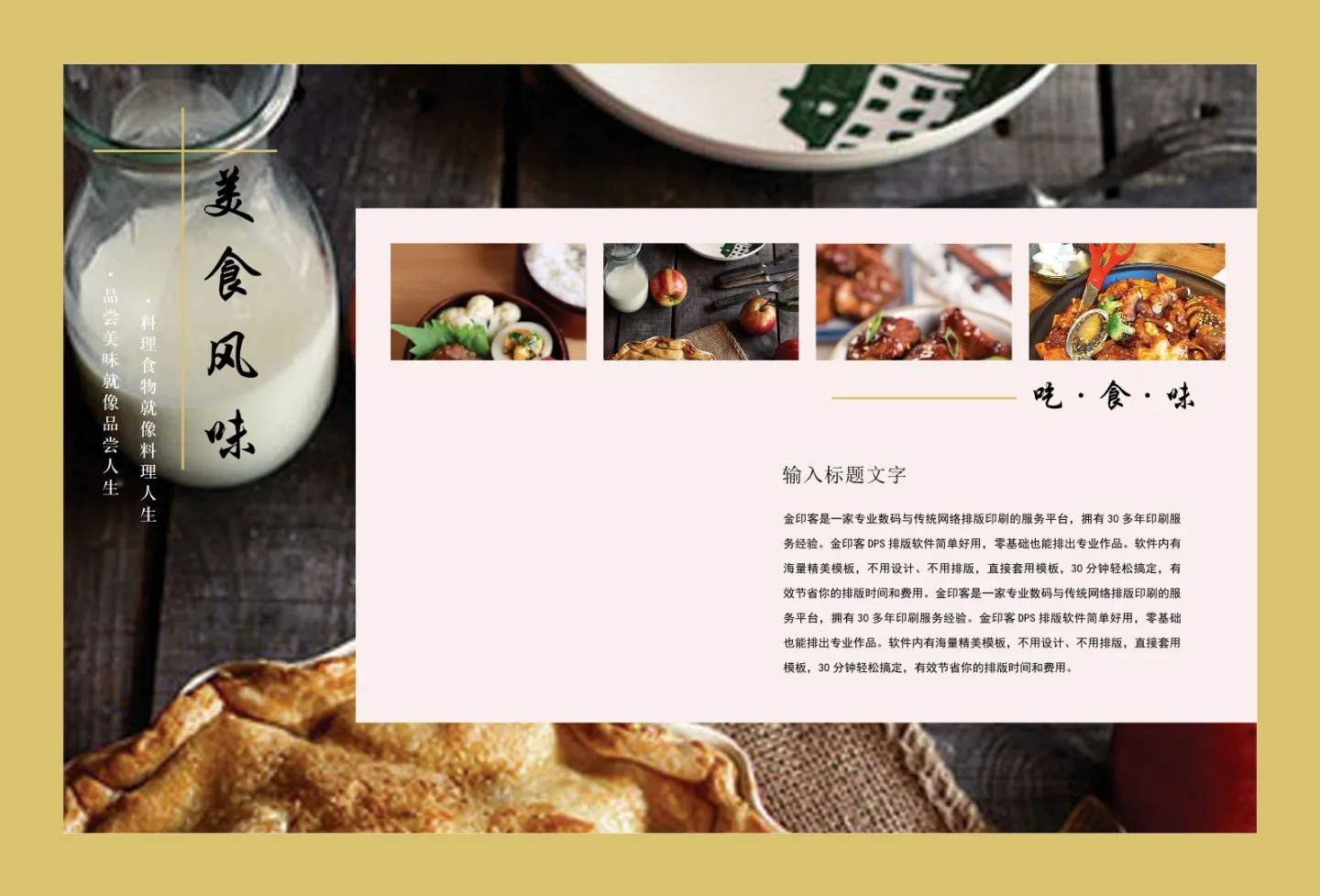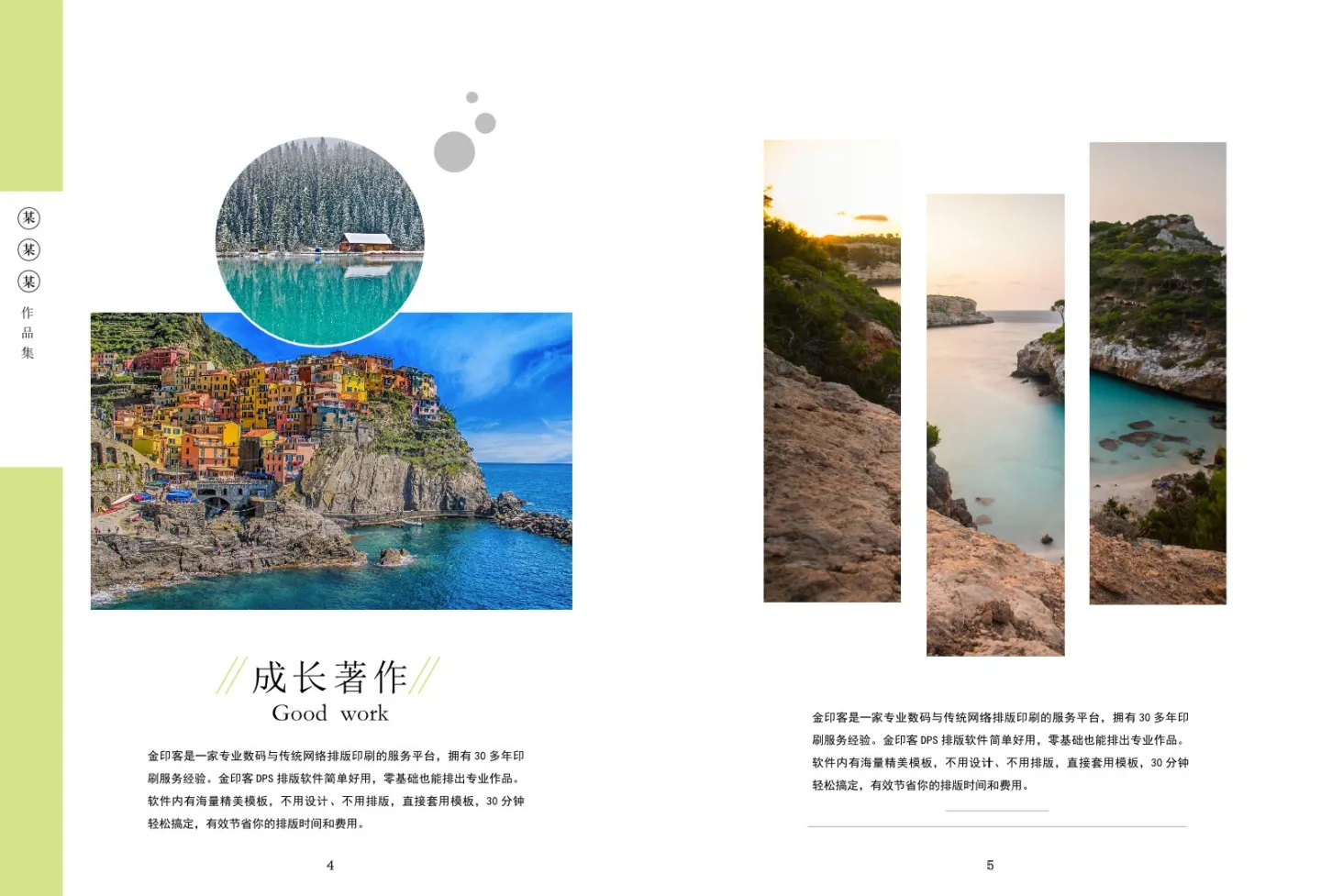 上面为大家展示了美食画册、家居花萼、旅游画册和毕业纪念册四种画册的设计页面,你在制作画册时,可以进行排版设计方面的参考。这些页面都出自金印客DPS设计排版印刷分享软件内的画册模板,在这里还可以看到更多好看的页面。