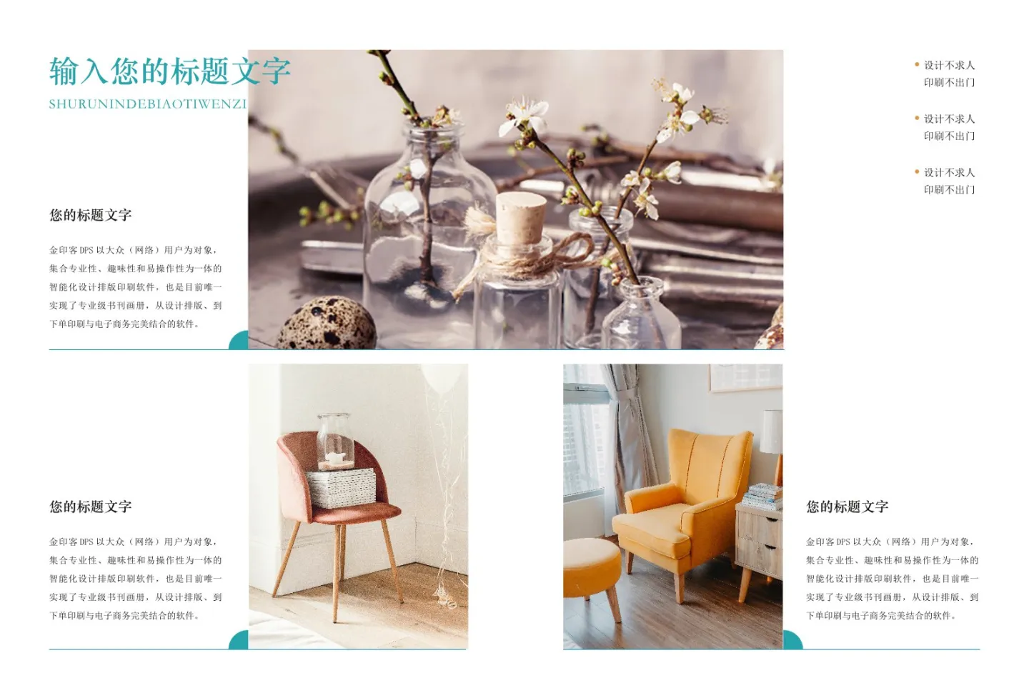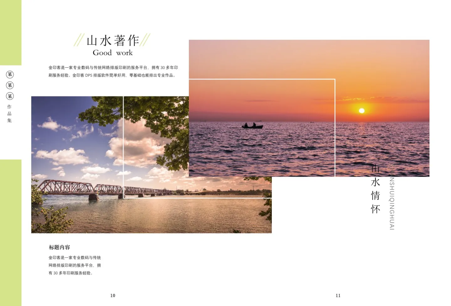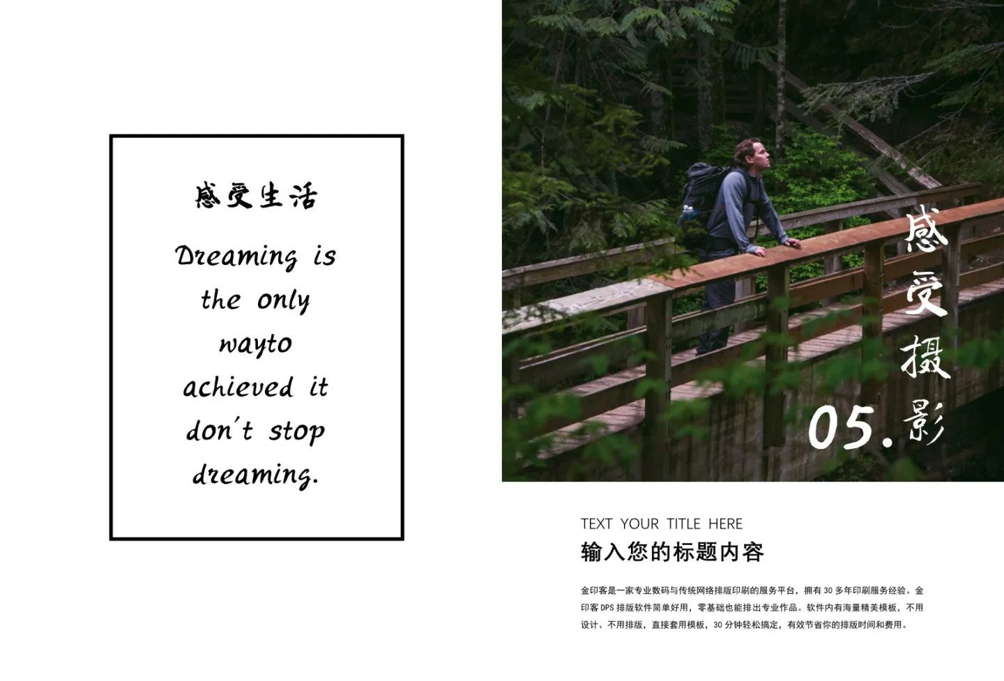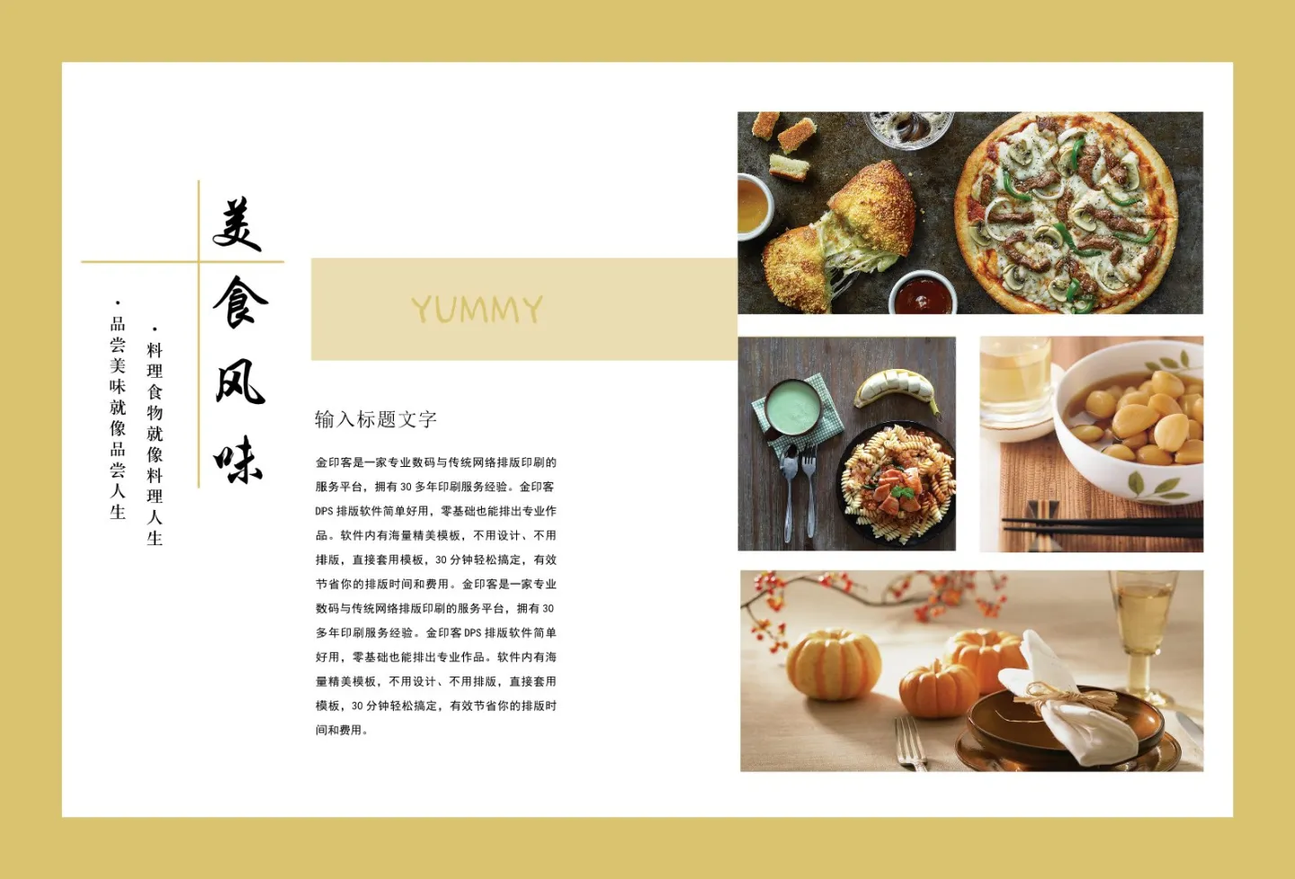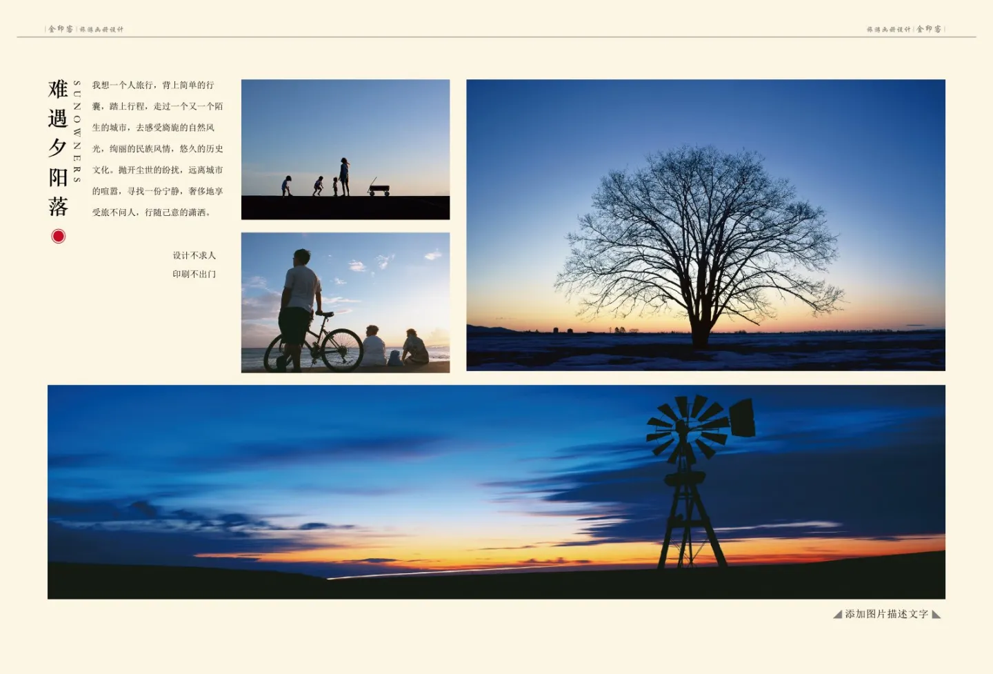 上面为大家展示了美食画册、家居花萼、旅游画册和毕业纪念册四种画册的设计页面,你在制作画册时,可以进行排版设计方面的参考。这些页面都出自金印客DPS设计排版印刷分享软件内的画册模板,在这里还可以看到更多好看的页面。