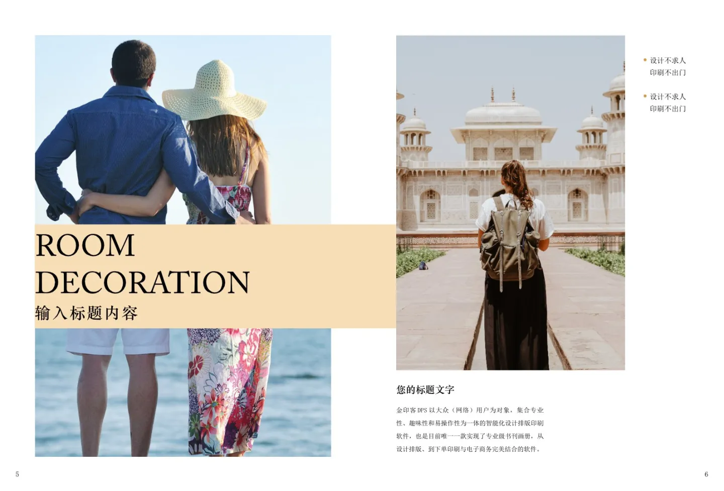 和那种千篇一律的影楼式相册不同,在金印客DPS设计排版印刷分享软件内,有非常多的不同种类不同样式的画册模板。它们的图片排版形式丰富多样,而且图文并茂,十分具有艺术美感。用这些画册模板排出来的相册,无论在观赏性还是内容的丰富性上,都高出了影楼相册一大截。