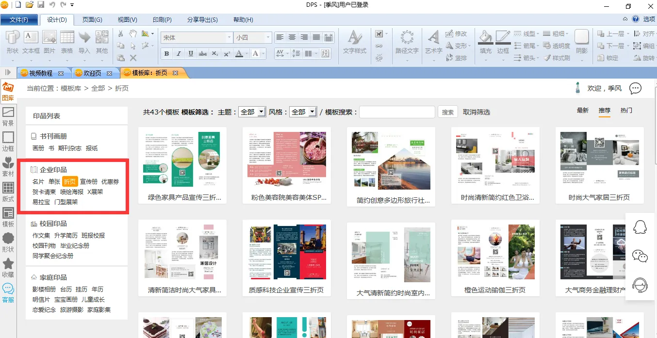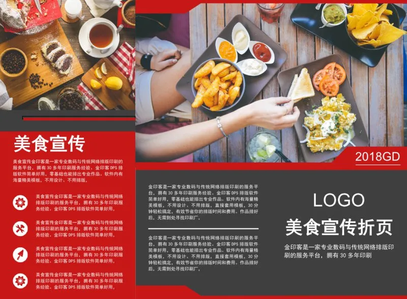 你只需要在电脑上下载金印客DPS设计排版印刷分享软件,然后就可以免费套用模板了,替换模板上的图文,最多30分钟就可以搞定三折页的排版,就像套用PPT模板一样简单!