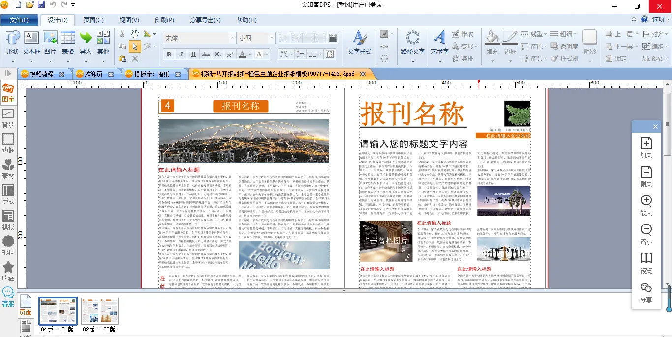 第三,将模板在DPS软件内打开,用你准备好的文字和稿件,替换掉模板中的图文,再依据实际的情形略作调整,一份属于你自己的报纸就编辑好了。