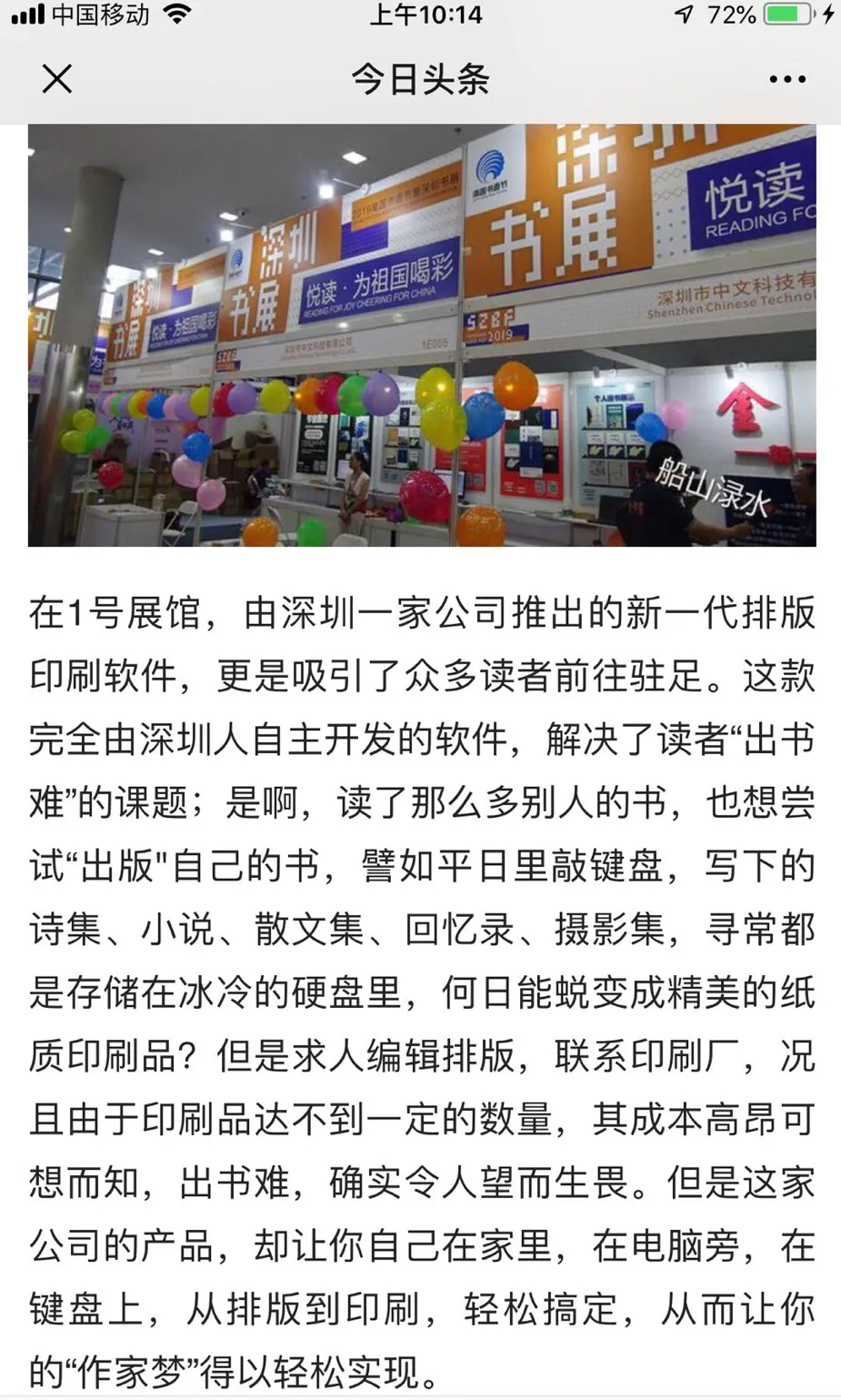 不少参观者在了解和操作金印客排版软件之后,也自发做起了金印客的“宣传大使”,在今日头条、微信公众号和朋友圈上发文介绍金印客排版软件。