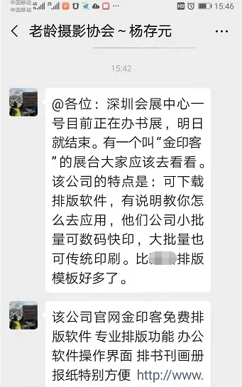 学会孙礼明秘书长在参观金印客展位时说,过去老年摄影学会的会刊主要是使用Photoshop制作,过程比较复杂繁琐,日后就用金印客软件排版制作学会刊物了。