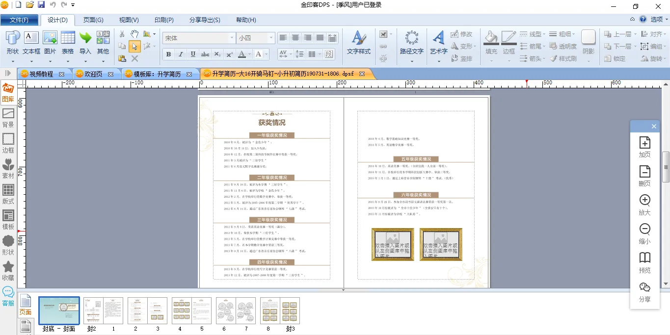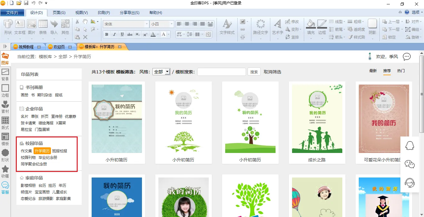 以上就是家长们在为孩子制作升学简历时需要注意的事项,在这里还教大家一个制作升学简历的技巧,那就是大家可以不用自己用Word制作,直接套用金印客DPS设计排版印刷分享软件内的升学简历模板。免费下载软件后,就可以在金印客的【模板库】内发现多种升学简历模板,全部免费,可以根据自己的需要套用。