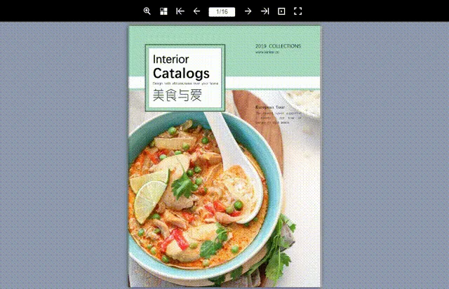 美食画册排好之后,你还可以通过点击编辑栏上方的【分享导出】——【一键分享】——【分享所有页】免费获得可翻阅的3D电子版画册,将其收藏起来,就可以随时发送给网络用户查阅啦。