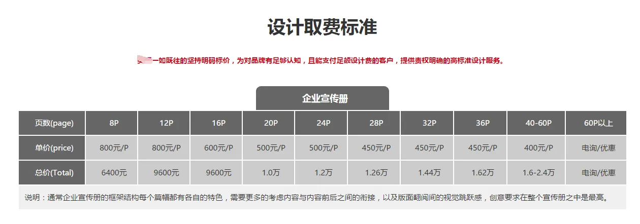 在这里,做一本20P的画册,每P的设计费用是500元,设计总价高达10000元!