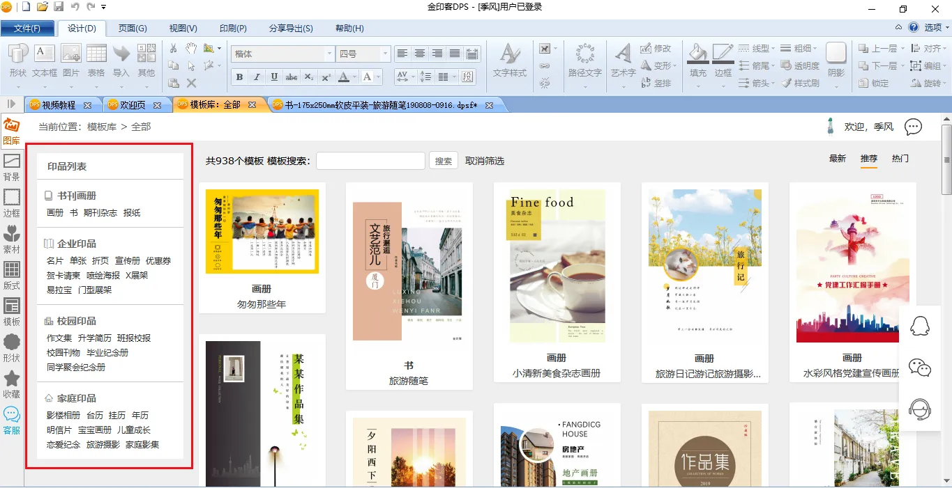 软件中有大量现成的精美模板,包括书籍、画册、报纸、杂志、作文集、毕业纪念册、企业宣传册、名片、X展架等等,我们在日常生活中需要制作的印刷品,都可以在模板库中找到相应的模板。