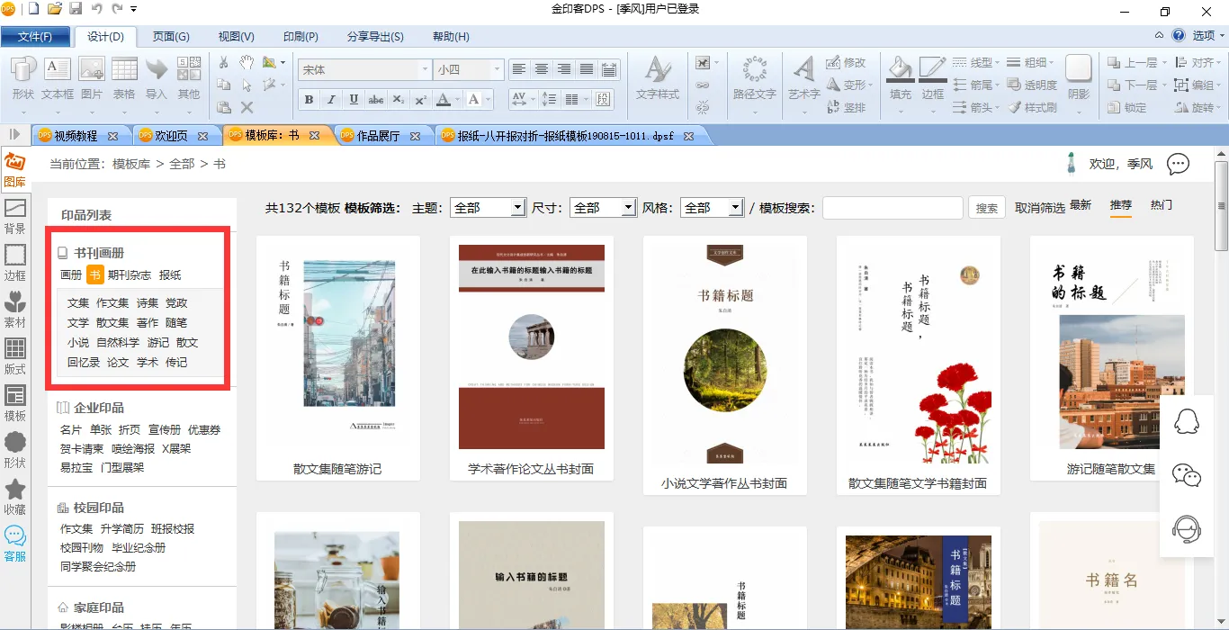 图书排版,是金印客排版设计软件的“杀手锏”之一,使用软件,就可以轻松排版各种类型的书籍。软件内有多种书籍模板,包括文集、诗集、散文集、小说、回忆录、随笔、党政读物、学术论著、自然科学、游记、传记等等,所有模板全部可以免费使用。