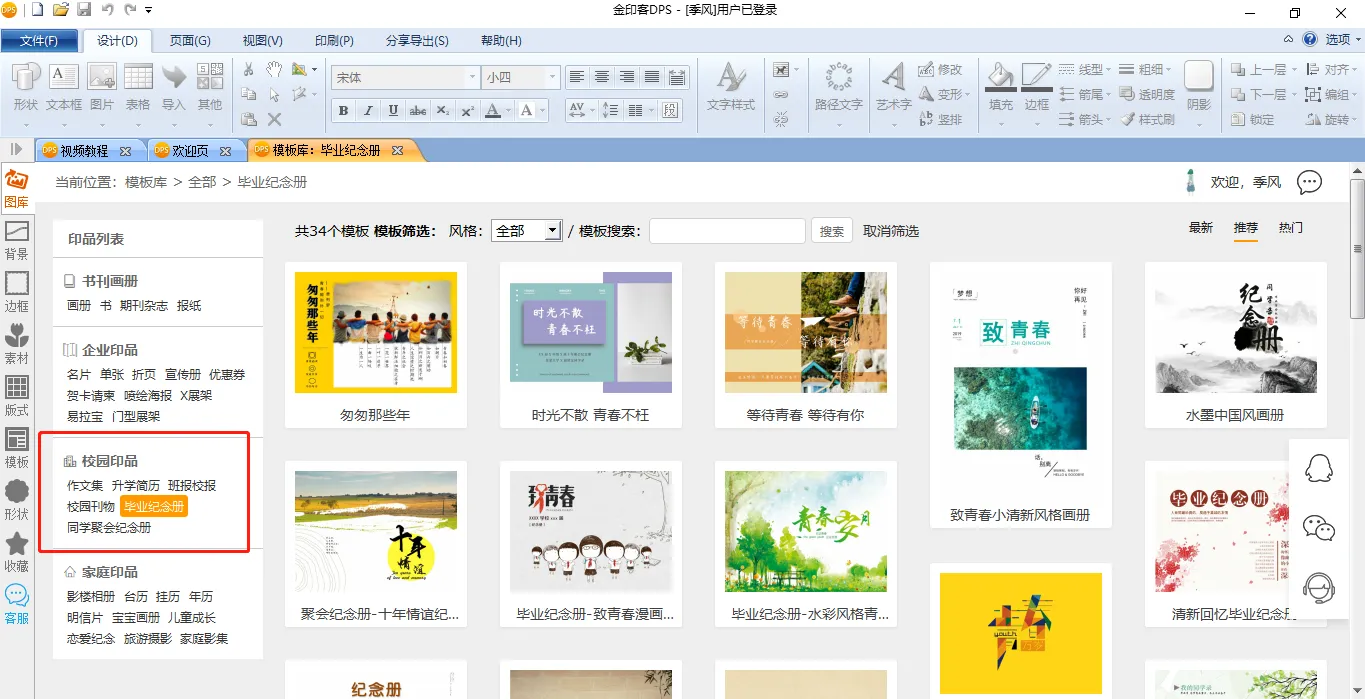 为什么,金印客设计排版软件可以让用户自己轻松制作毕业纪念册呢?这是因为,在软件内有非常多的专业精美的毕业纪念册模板。在电脑上下载软件后,打开【模板库】,在【校园印品】中选择【毕业纪念册】就可以看到。