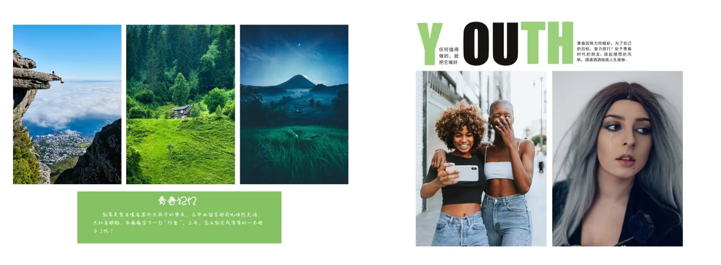 过往制作毕业纪念册的方法,就是先拍好照片,然后交由外面的设计师来制作。由于是远程交流,所以这个沟通过程比较麻烦,需要多次确认,才能保证不会出错。比如要保证图片放置的先后顺序,图片和文字对应的位置不要乱等等。另外,如果是请设计师制作毕业纪念册的话,收取的费用也会比较昂贵。有些设计公司报价甚至高达80-150元/P,也就是说,一本30页的纪念册,设计价格可能在3000元左右。