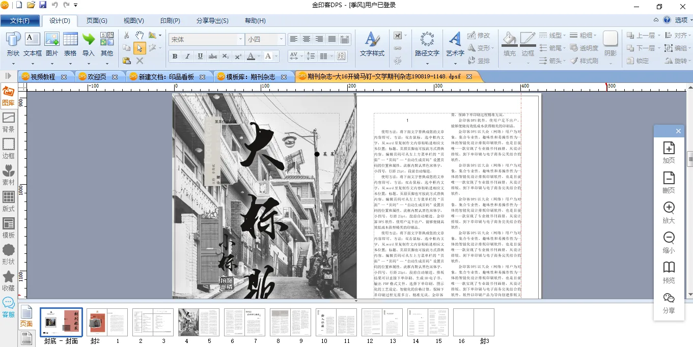 杂志排版,也是金印客DPS设计排版印刷分享软件的主要功能之一。用户不需要有杂志排版的经验,也不需要掌握专业的设计技能,只需使用软件,就可以轻松排版文学杂志、情感杂志、生活杂志、财经杂志、专业期刊、行业刊物、企业内刊、学术期刊、校园刊物等等多种杂志类型。