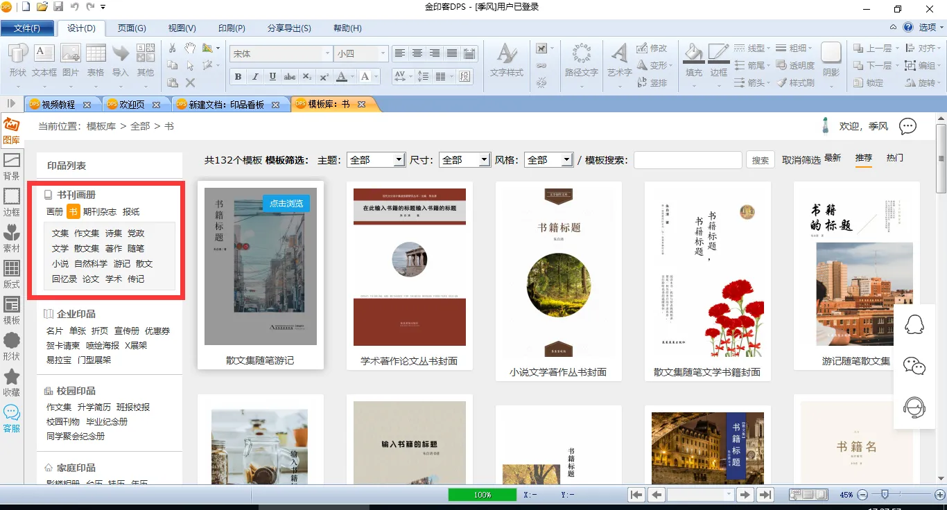 在金印客软件的【模板库】中,有非常多的书籍模板,包括诗集、散文集、小说、回忆录、传记、随笔集、论著等等,我们在日常生活中需要排版的书籍都包含在里面了。