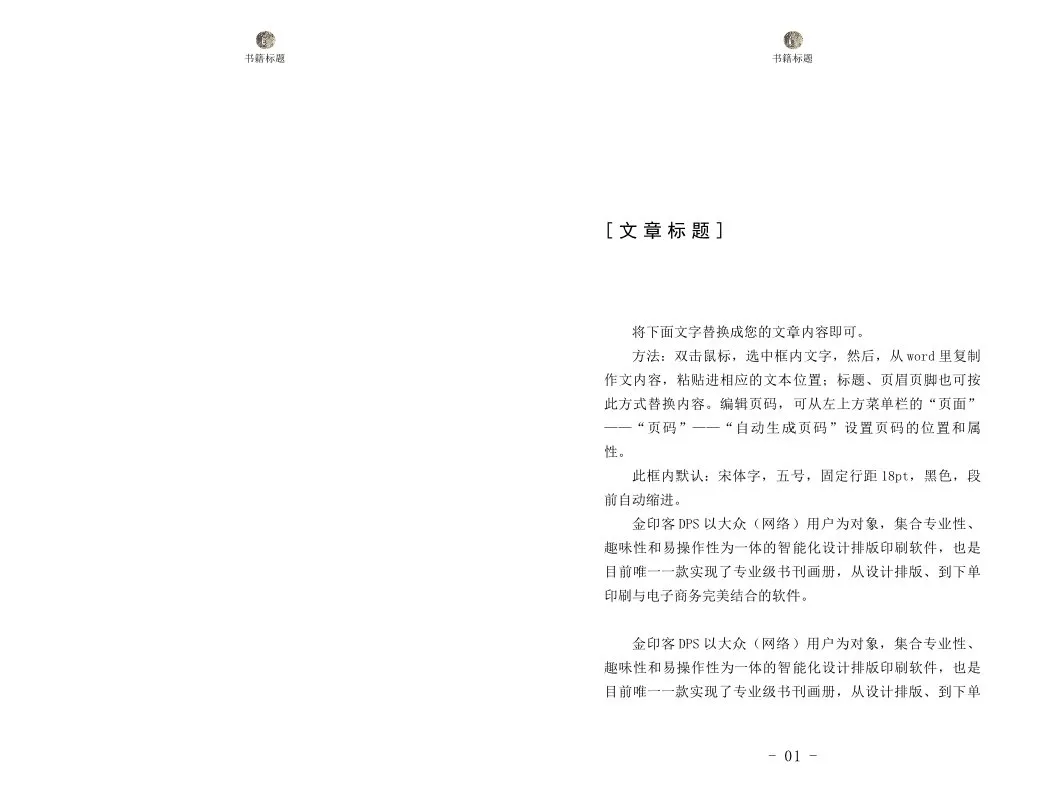 选中模板后,将模板在金印客DPS设计排版印刷分享软件中打开,就可以对模板内容进行编辑了。不需要你再进行设计和排版,直接替换图文,一本属于你的专业书籍就完成啦。