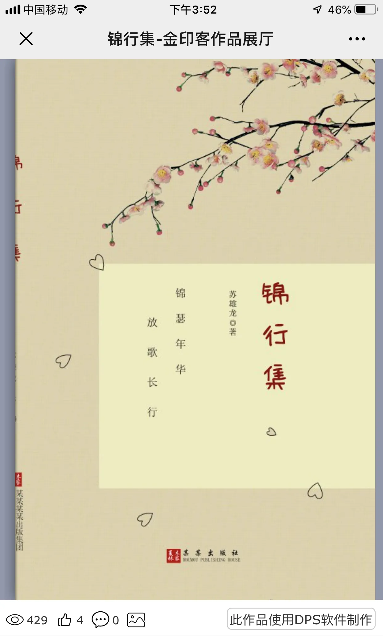 作品排好后,只需点击编辑栏上方的【分享导出】——【一键分享】——【分享所有页】,就可以免费获得可翻阅的3D电子版作品,可以通过手机分享给好友欣赏,还能看到作品的点赞数和评论呢。
