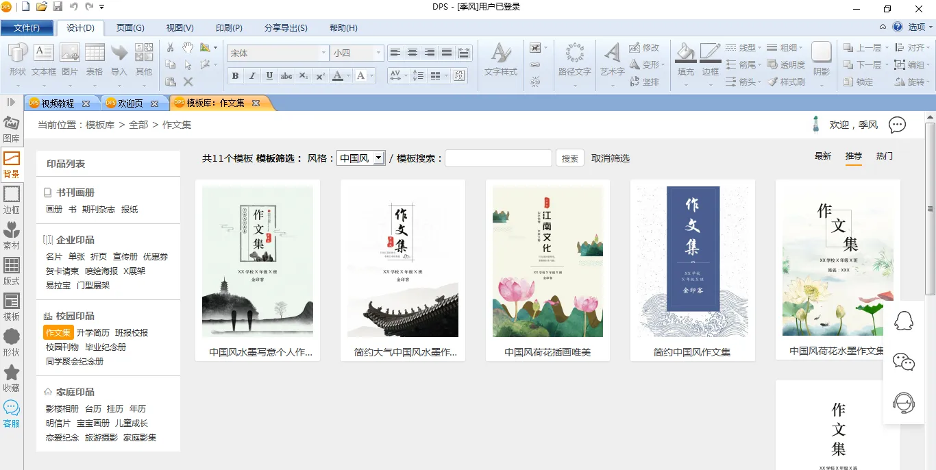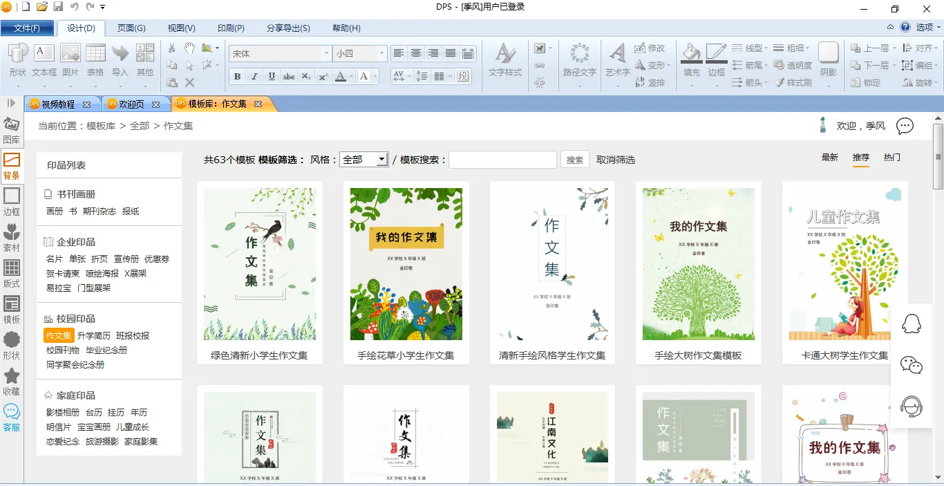 接着,在【校园印品】中选择【作文集】,就会看到许多作文集模板。